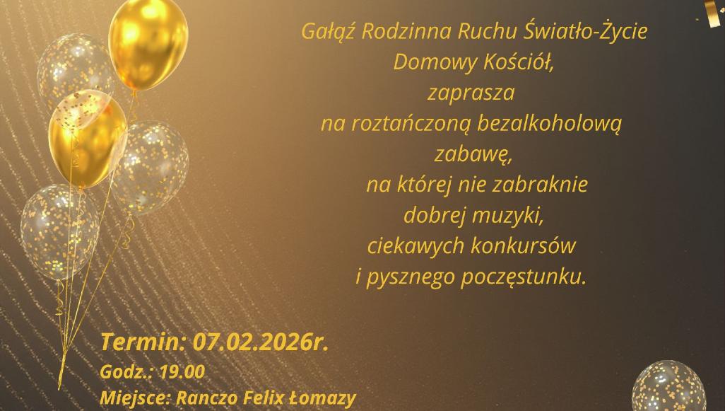 Domowy Kościół Rejon I Biała Podlaska zaprasza małżeństwa do udziału w bezalkoholowym balu, który odbędzie się 7 lutego o godz. 19.00 w lokalu w Łomazach. Wydarzenie zainauguruje obchody Tygodnia Małżeństwa w rejonie. Bal poprzedzi Msza Święta sprawowana o godz. 17.30 w kościele w Rossoszu, podczas której uczestnicy będą mogli wspólnie modlić się w intencji małżeństw i rodzin.
