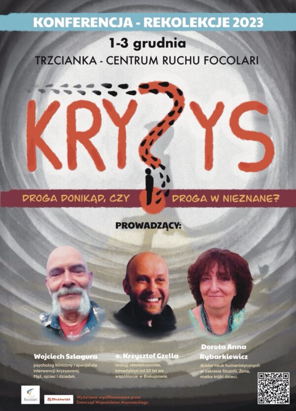 Celem konferencji pt. „Kryzys – droga donikąd czy droga w nieznane?” , która odbędzie się w dniach 1-3 grudnia w Centrum Ruchu Focolarii w Trzciance k/Wilgi jest przedstawienie odpowiedzi na te pytania z trzech perspektyw, bowiem uczestnikom towarzyszyć będą:O. Krzysztof Gzella OSB - Klasztor Zwiastowania w Biskupowie,