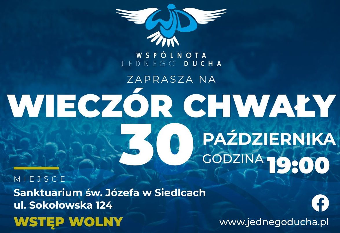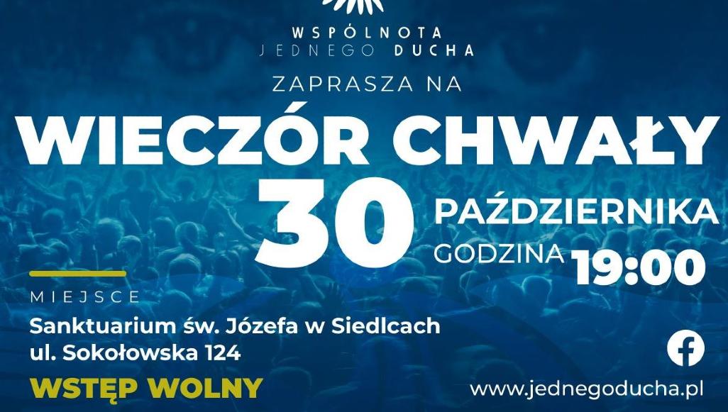 W Sanktuarium św. Józefa w Siedlcach odbędzie się Wieczór Chwały. Organizuje go Wspólnota Jednego Ducha. Odbędzie się on w czwartek, 30 października.