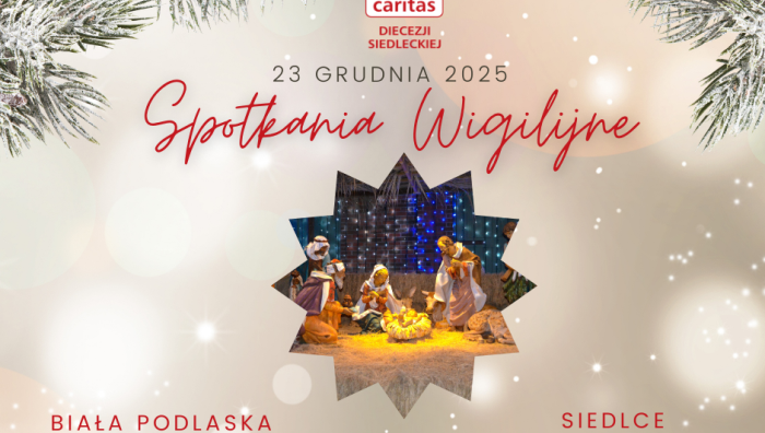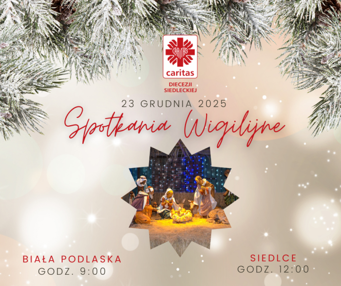 Spotkanie wigilijne jest skierowane do osób samotnych oraz osób w kryzysie bezdomności, znajdujących się pod opieką Caritas Diecezji Siedleckiej, Miejskiego Ośrodka Pomocy Społecznej oraz innych potrzebujących osób. Odbędzie się 23 grudnia o godz. 9:00 w budynku przy ul. Warszawskiej 15. Uroczystość przygotowuje bialskie Centrum Integracji Społecznej CDS wspólnie z Urzędem Miasta, MOPS w Białej Podlaskiej oraz Bialską Spółdzielnią Socjalną Caritas.