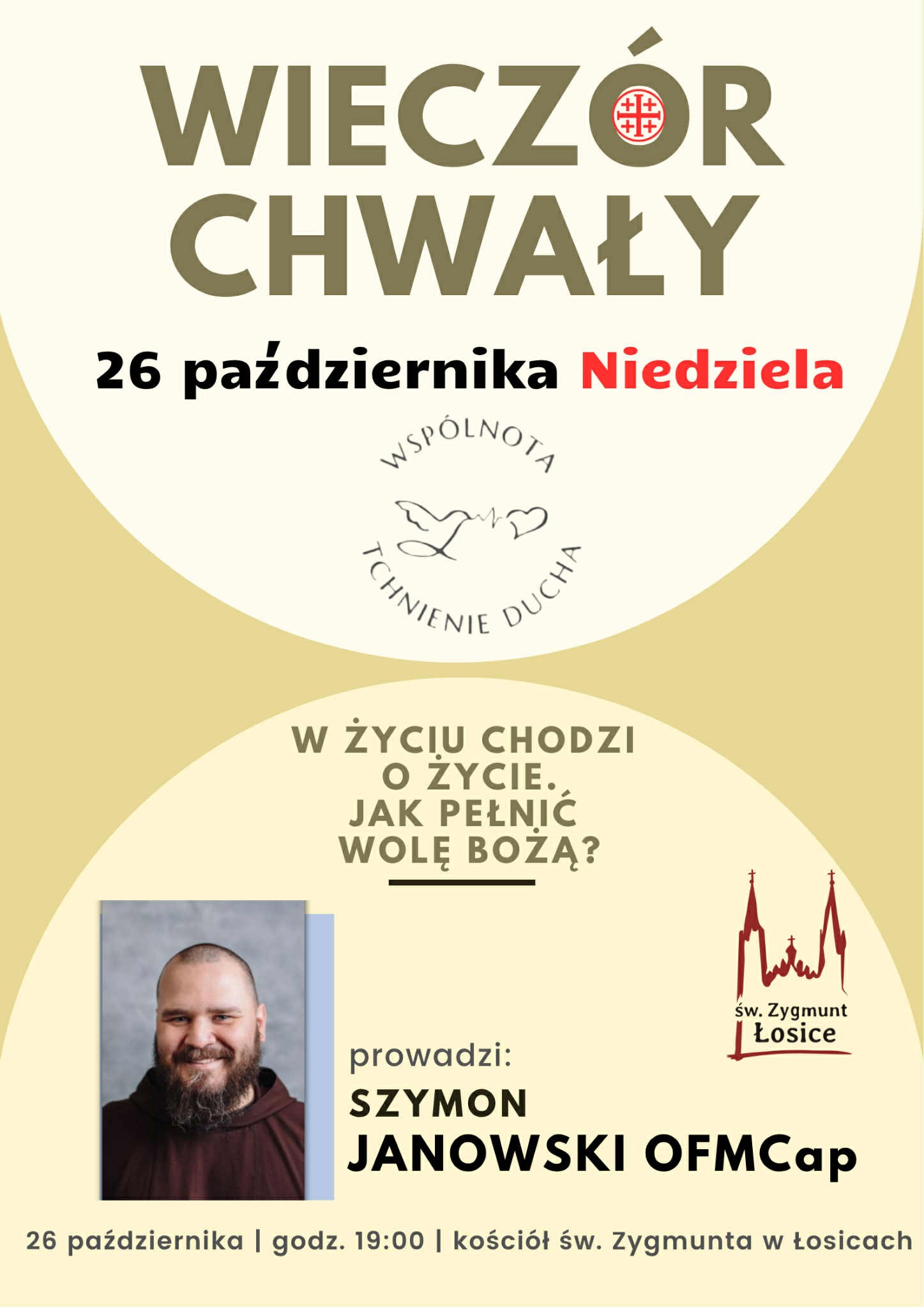 Wspólnota Tchnienie Ducha zaprasza do Łosic 26 października na Wieczór Chwały. Spotkanie poprowadzi o. Szymon Janowski, kapucyn, współorganizator Golgoty Młodych w Serpelicach.