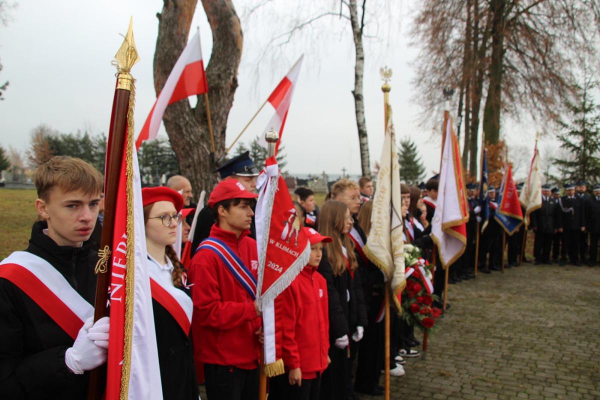 Po występie uczniów, mieszkańcy gminy oraz zaproszeni goście uczestniczyli we Mszy Świętej w intencji Ojczyzny, którą odprawił ks. Konrad Poterek.Kolejnym punktem obchodów był przemarsz na cmentarz parafialny, gdzie pod Pomnikiem Powstańców Styczniowych złożono kwiaty. Uroczystościom towarzyszyły okolicznościowe przemówienia.