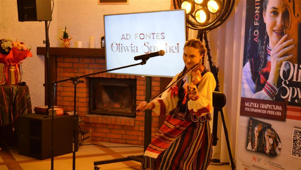 W czwartkowy wieczór, 4 grudnia, w Dworku Diana w Białej Podlaskiej – Sławacinku Nowym zaprezentowano debiutancki album Ad Fontes skrzypaczki Oliwii Spychel. Wydarzenie stało się okazją do rozmów o muzyce tradycyjnej, relacji mistrza i uczennicy oraz o roli młodego pokolenia w zachowywaniu dziedzictwa Południowego Podlasia.Oliwia, od najmłodszych lat związana z lokalnymi melodiami, podkreślała, że skrzypce były dla niej sposobem na wyciszenie i odnalezienie równowagi. Wspominała również, że Ad Fontes powstało z potrzeby przekazania dalej muzyki przekazywanej w rodzinach od pokoleń oraz zachęcenia młodych osób do sięgania po tradycyjny repertuar regionu.