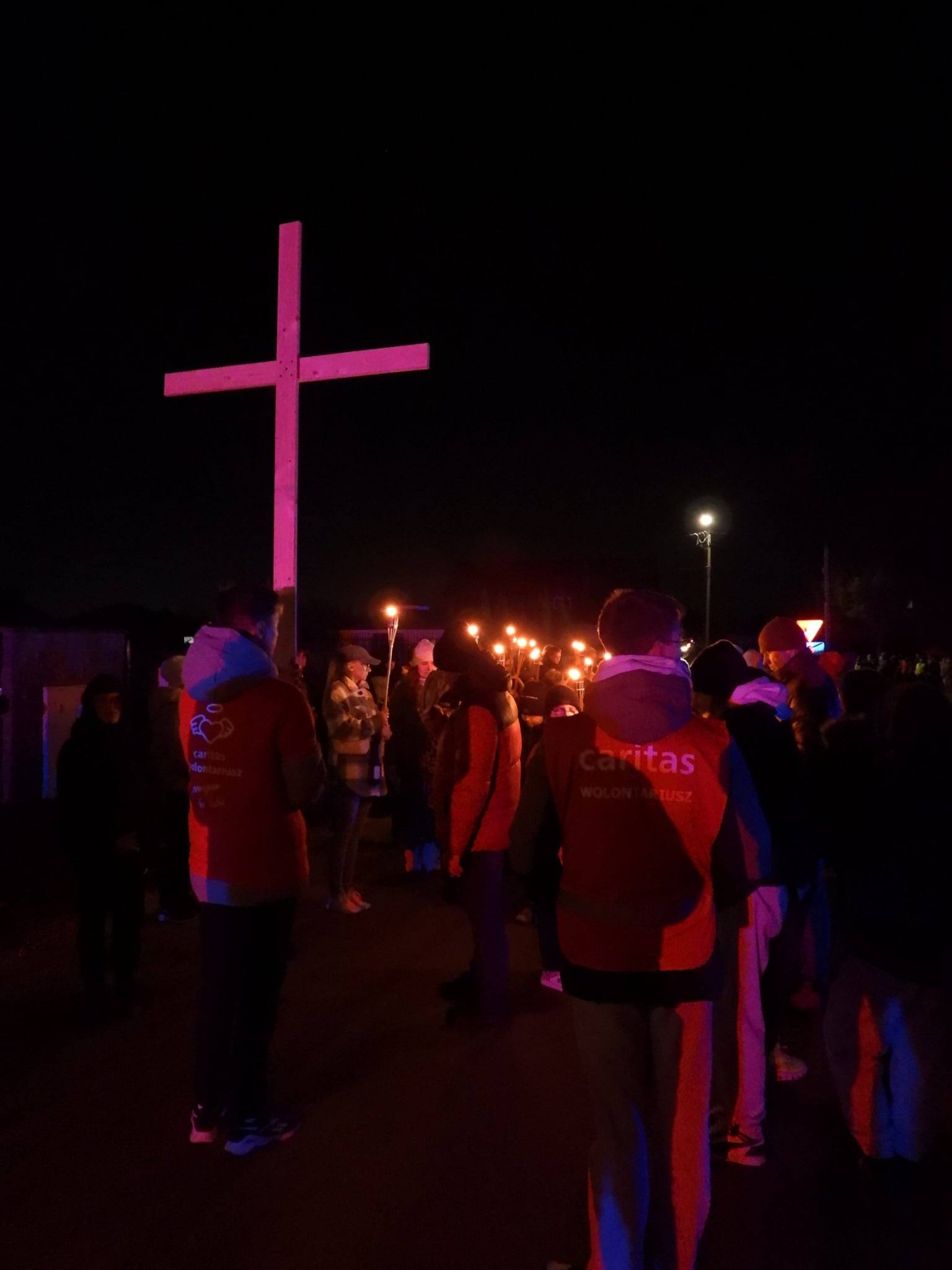 Nabożeństwo, zorganizowane przez Szkolne Koła Caritas, stało się okazją do wspólnej modlitwy, refleksji i podkreślenia więzi międzypokoleniowej w lokalnej społeczności.Uczestnicy Drogi Krzyżowej, od najmłodszych uczniów po seniorów, w skupieniu przechodzili kolejne stacje Męki Pańskiej. Krzyż – symbol wiary i nadziei – był niesiony z rąk do rąk, co ukazało jedność i zaangażowanie mieszkańców.