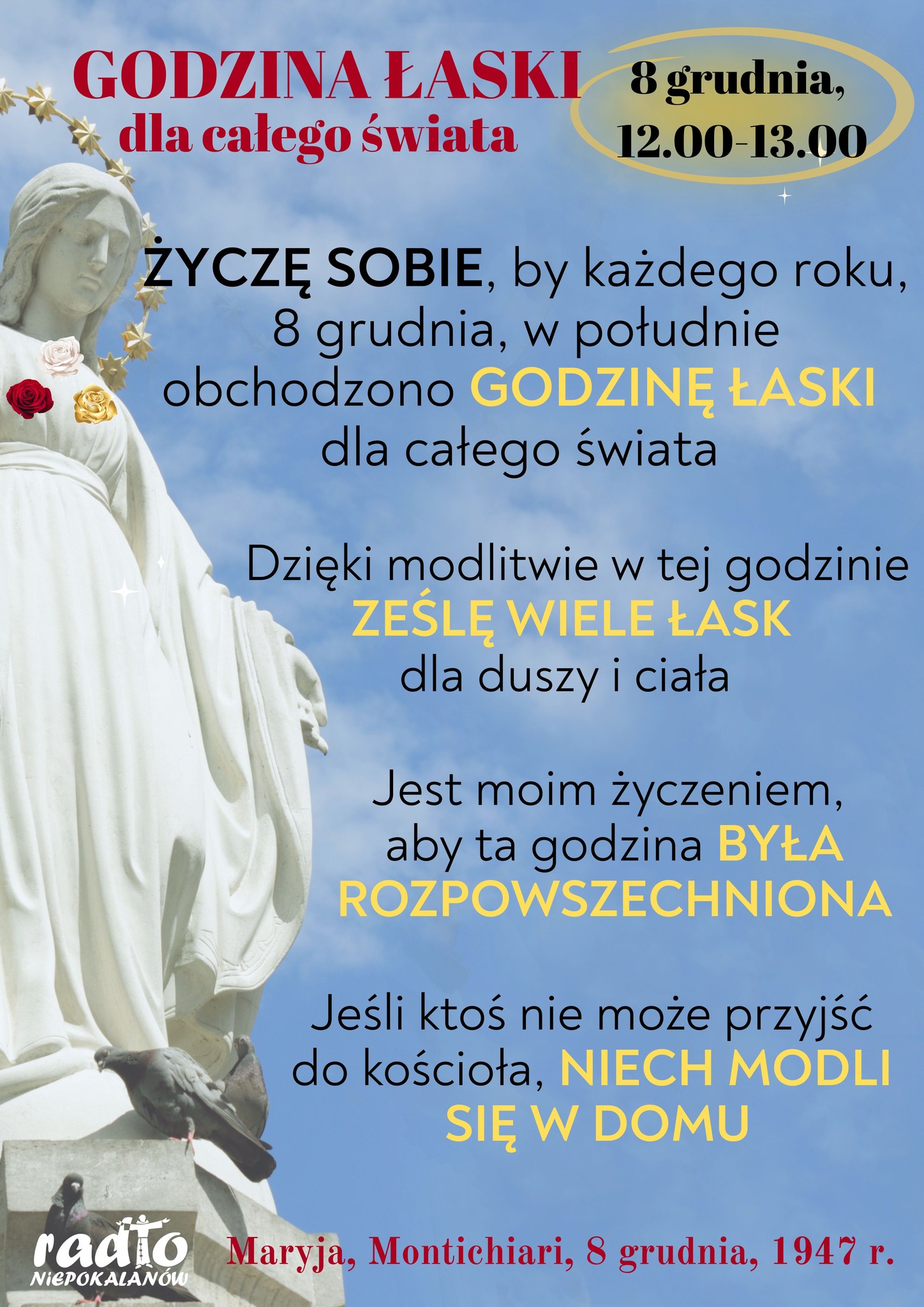- Godzina Łaski ma odbywać się każdego roku 8 grudnia w południe.