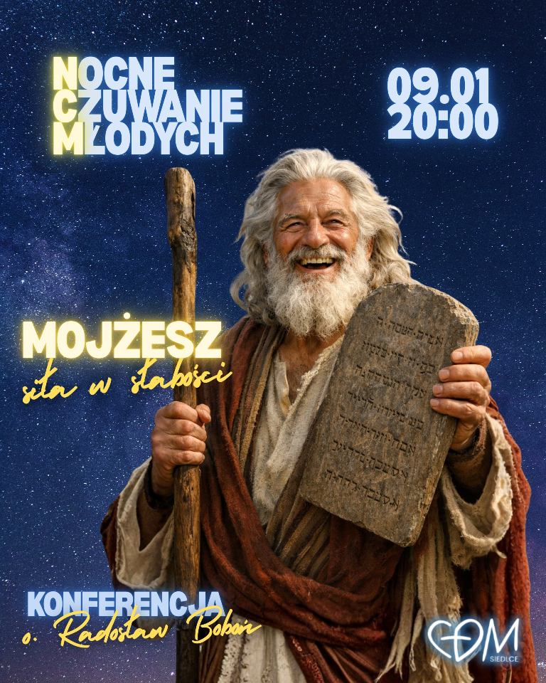 Do refleksji nad tematem „Mojżesz – siła w słabości” zapraszają organizatorzy najbliższego spotkania NCM, które odbędzie się 9 stycznia o godz. 20:00 w kaplicy CDM przy ul. Brzeskiej 37 w Siedlcach. Gościem spotkania będzie o. Radosław Boboń.