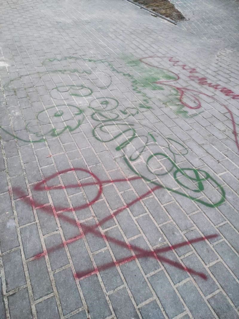 Najnowsze napisy wykonane farbą w sprayu sugerują jednak, że osób dopuszczających się tego typu wandalizmu może być więcej. Tym razem pomalowane zostały m.in. chodniki na osiedlu Tarasy. Sprawcy działali w pośpiechu – na miejscu została nawet zatyczka od puszki z farbą.