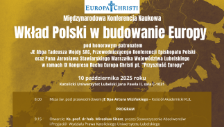 Region Patronat medialny Kraj Lublin Sob. 04.10.2025 08:08:36 Wkład Polski w budowanie Europy. Międzynarodowa Konferencja Naukowa na KUL-u