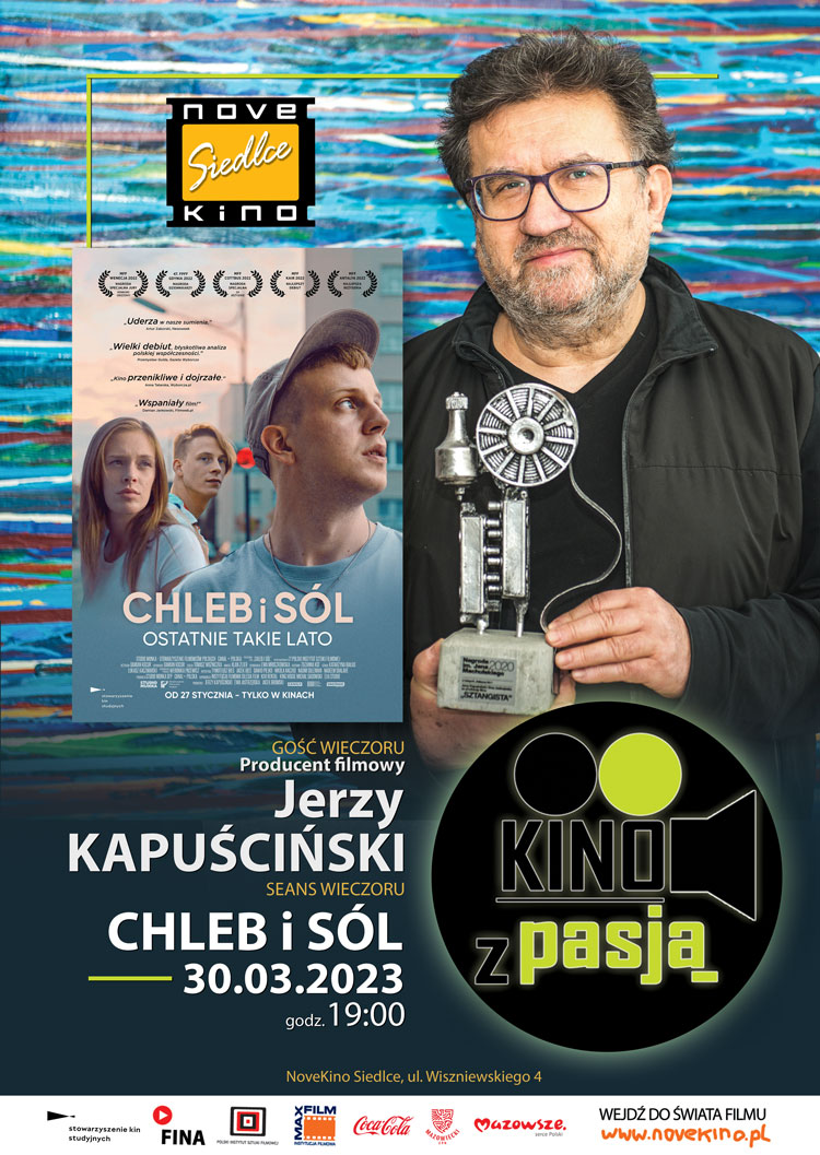 Jerzy Kapuściński, producent filmowy i dyrektor artystyczny Studia Munka, będzie gościem najbliższego spotkania w ramach cyklu ”Kino z Pasją” w Novekino Siedlce. Jego wizyta związana jest ze specjalnym seansem jednego z ciekawszych debiutów fabularnych ostatnich lat, wyreżyserowanym przez Damiana Kocura filmu „Chleb i sól”.