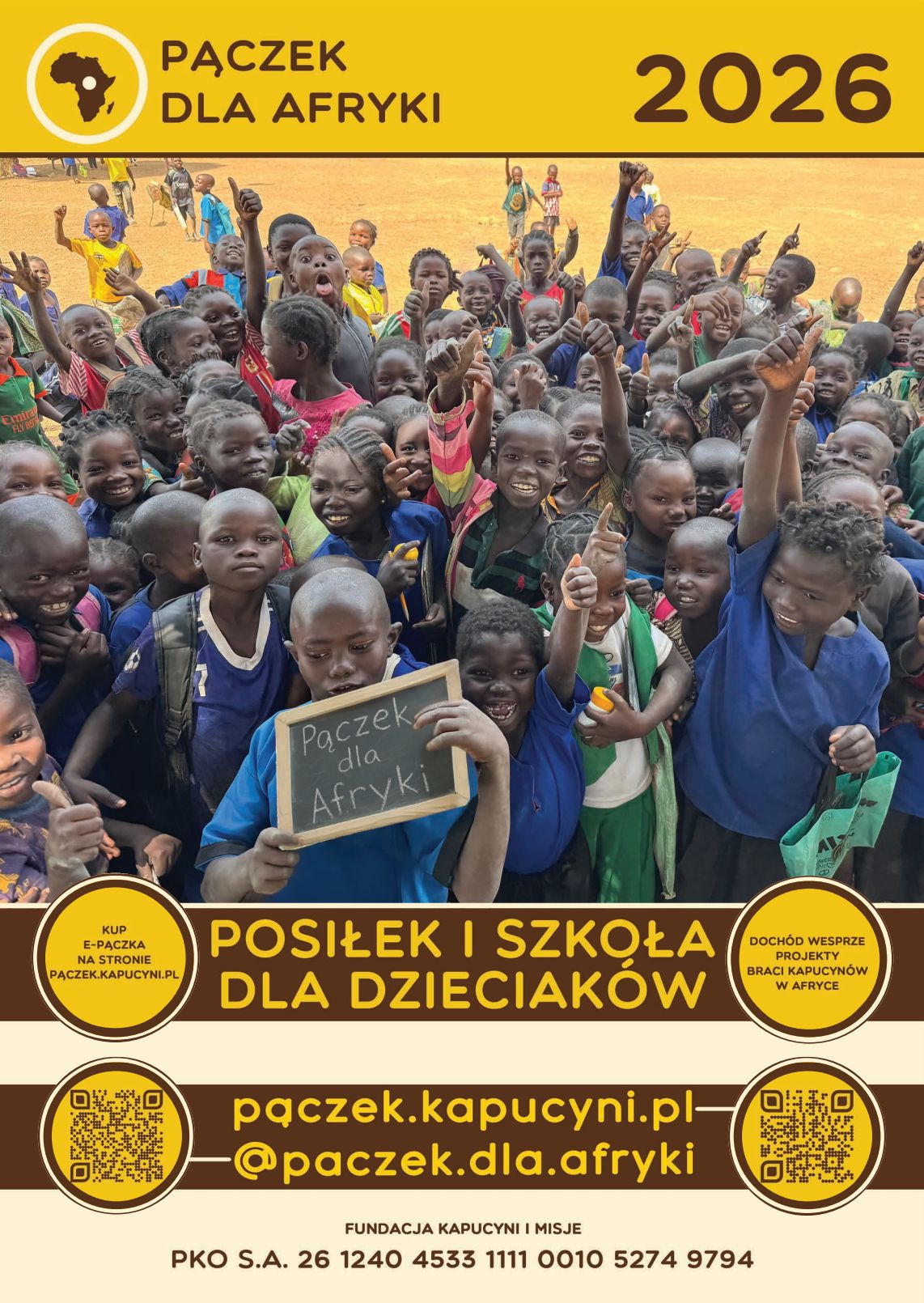 Organizatorzy przypominają, że za 30 złotych, czyli równowartość zaledwie kilku ciastek, można zapewnić tam jednemu dziecku miesięczne kształcenie i wyżywienie. Na internetowej stronie akcji działa mechanizm wpłat elektronicznych i podane są dane do tradycyjnych przelewów.Misjonarskie projekty w Afryce to nie tylko duszpasterstwo i edukacja, ale także budowa studni i zakupy leków. Więcej informacji można znaleźć pod adresem paczek.kapucyni.pl