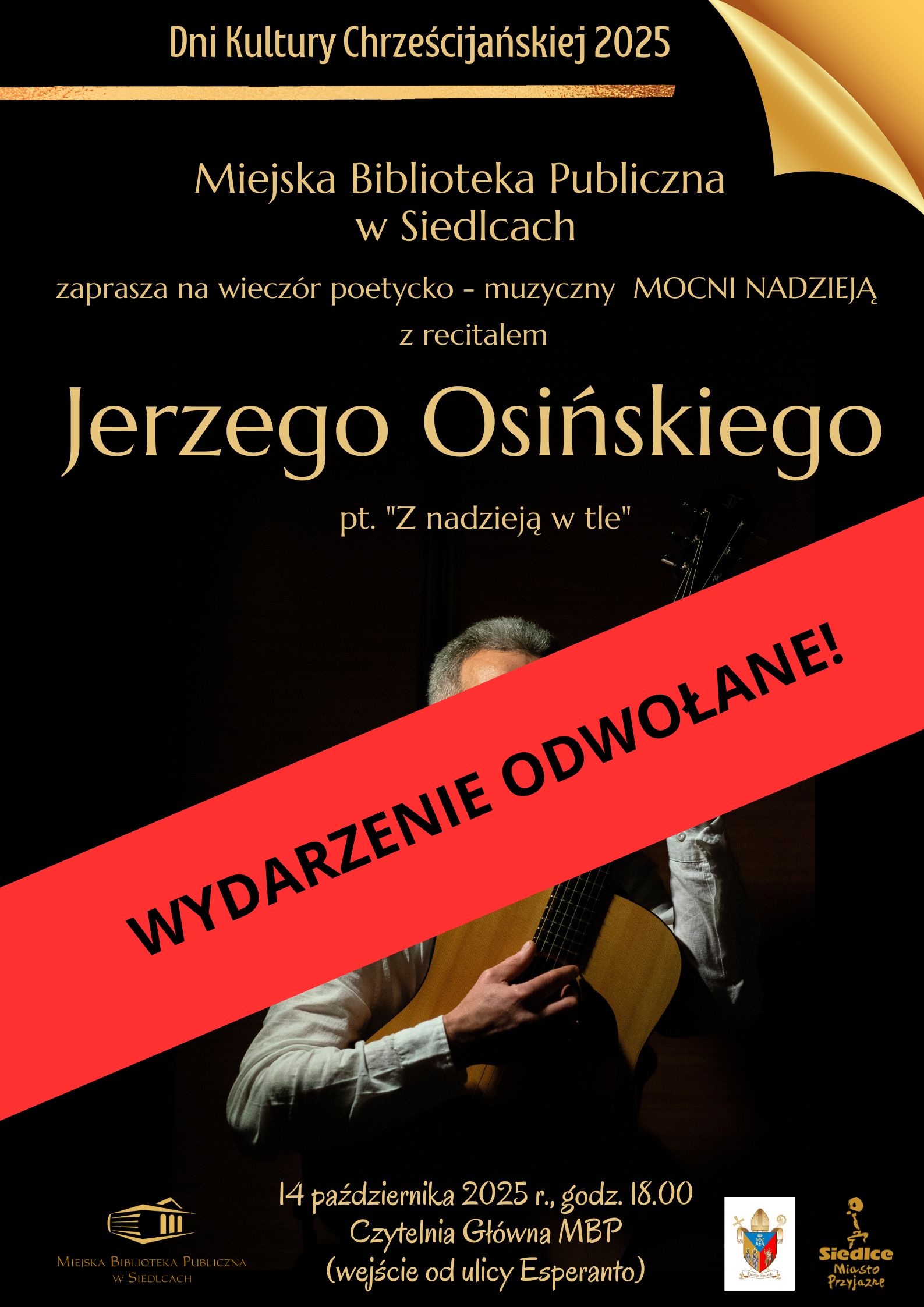 Recital Jerzego Osińskiego zatytułowany „Z nadzieją w tle”, który miał odbyć się w ramach Dni Kultury Chrześcijańskiej, został odwołany.