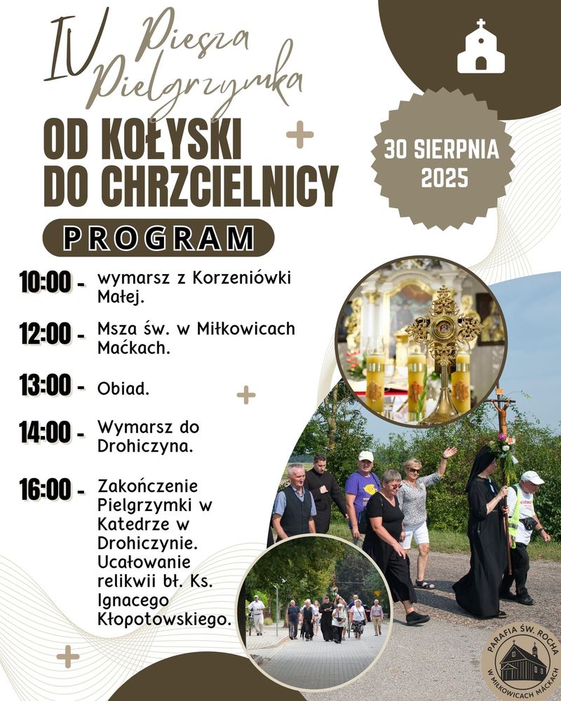 Po raz kolejny odbędzie się piesza pielgrzymka poświęcona postaci bł. ks. Ignacego Kłopotowskiego – „Od kołyski do chrzcielnicy”. 30 sierpnia pątnicy przejdą z Korzeniówki Małej – miejsca urodzenia błogosławionego kapłana – do Drohiczyna, gdzie został ochrzczony.