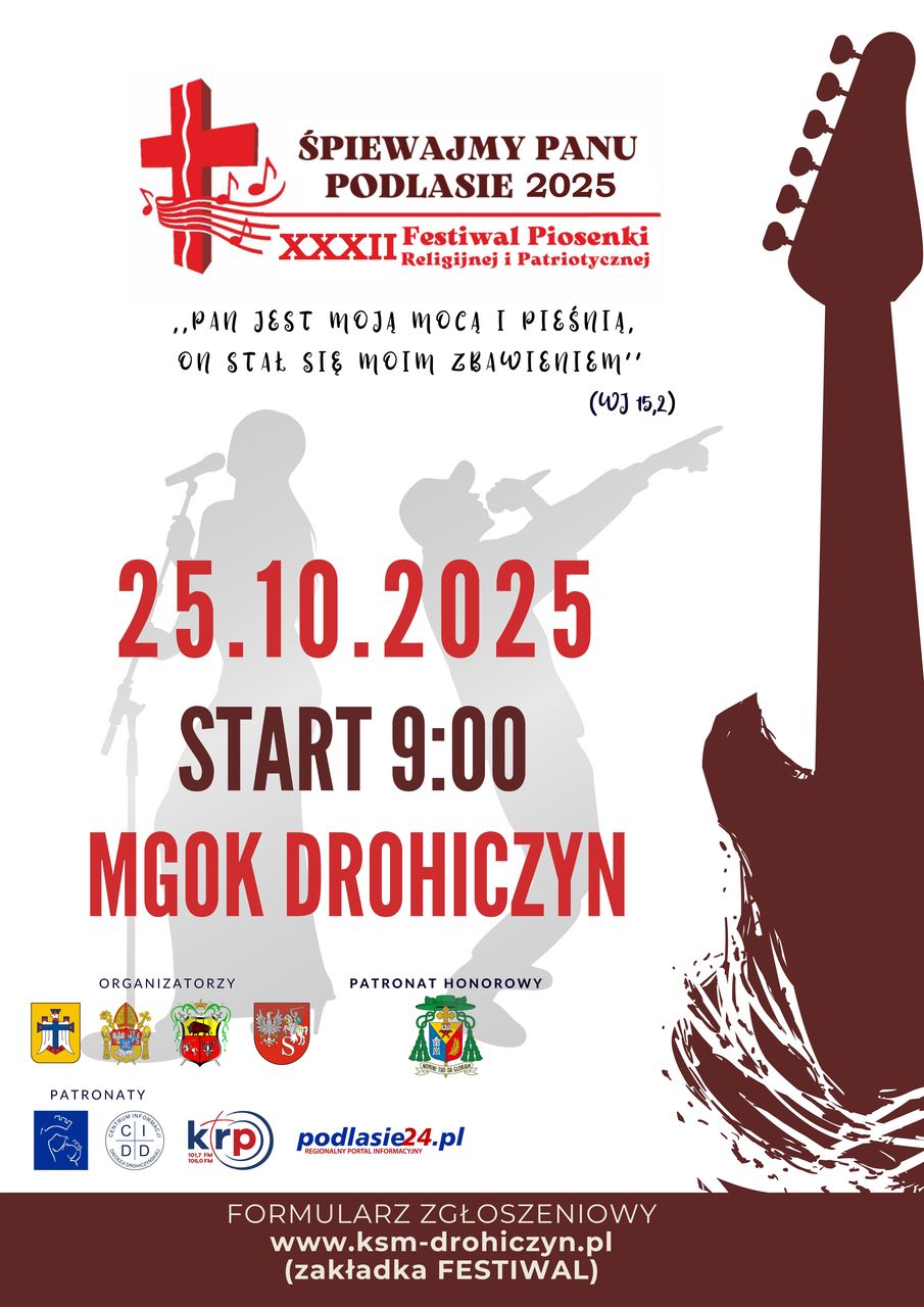 Katolickie Stowarzyszenie Młodzieży Diecezji Drohiczyńskiej organizuje Festiwal Piosenki Religijnej i Patriotycznej „Śpiewajmy Panu”. Odbędzie się on 25 października w Drohiczynie. Festiwalowi patronuje Katolickie Radio Podlasie oraz portal Podlasie24.