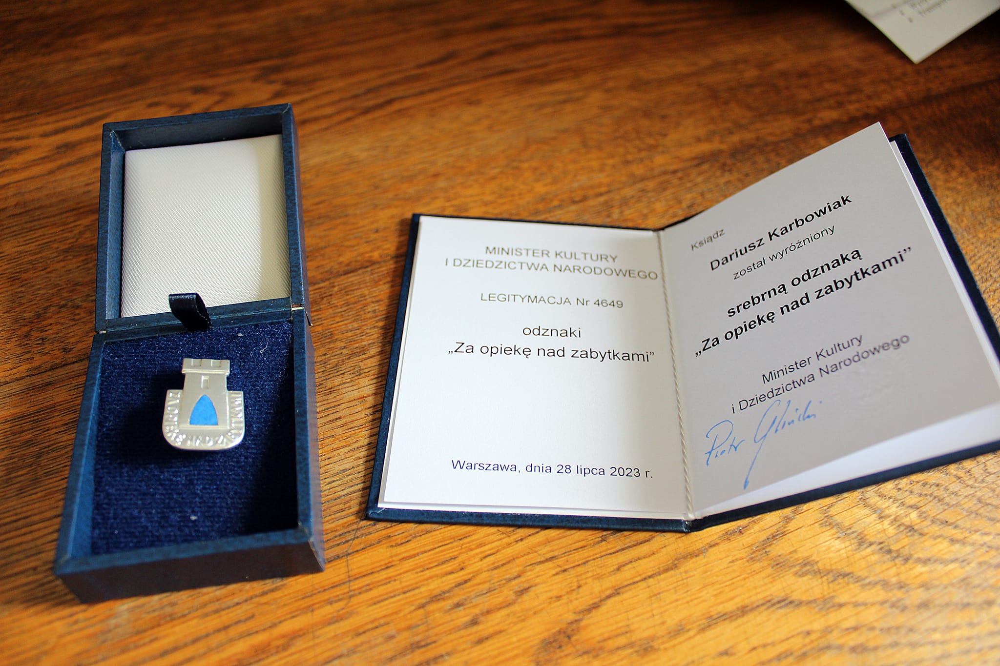 Ks. Dariusz Karbowiak ze srebrną odznaką "Za opiekę nad zabytkami"