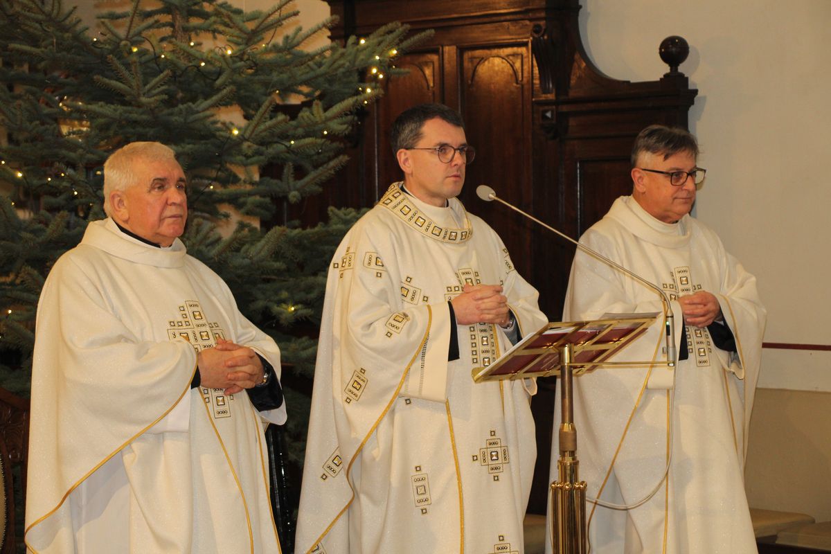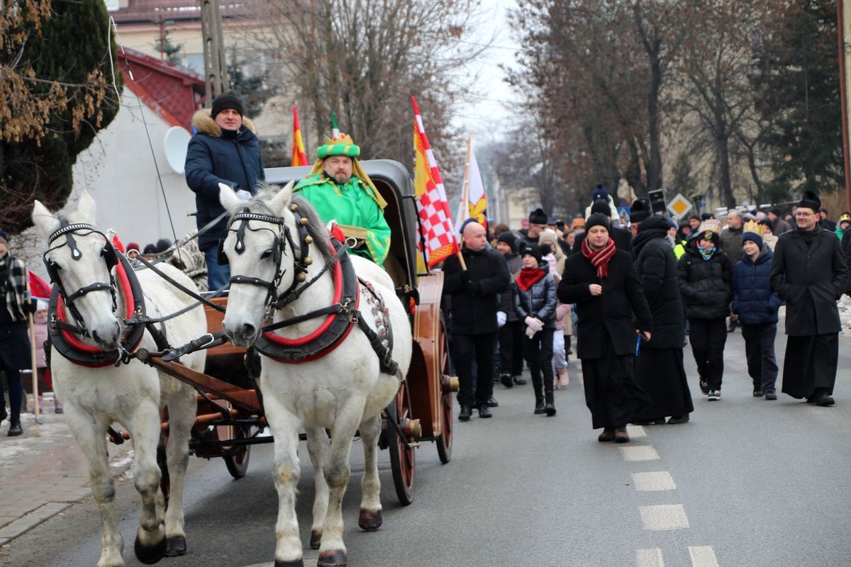 Uroczystość Objawienia Pańskiego rozpoczęła się Mszą św. koncelebrowaną w kolegiacie Przemienienia Pańskiego pod przewodnictwem ks. dr Pawła Bieleckiego. Współcelebransami byli ks. prałat Ryszard Andruszczak oraz proboszcz parafii, ks. kan. Stanisław Szymuś, który w homilii podkreślił, że historia magów nie jest jedynie piękną, znaną od dzieciństwa sceną, ale opowieścią o każdym człowieku, który w swoim życiu poszukuje sensu, prawdy i Boga. Zwrócił uwagę, że mędrcy posiadali wszystko, co mogło zapewnić im wygodne życie, wiedzę, pozycję i bogactwo. Mimo to nie pozostali w swoich bezpiecznych domach, lecz wyruszyli w drogę. – To pierwsza lekcja, jakiej nas uczą, że nie wolno stać w miejscu, bo gdy stoimy w miejscu, zaczynamy się cofać – zaznaczył. Kaznodzieja podkreślił, że wiara nie może być jedynie statycznym przywiązaniem do tradycji, ale powinna rozwijać się wraz z rozwojem człowieka. – Im bardziej dojrzewamy, tym dojrzalsza powinna być także nasza wiara: nie dziecięcy paciorek, ale świadoma modlitwa; nie kościółek, lecz Kościół – mówił. W świecie, który pędzi coraz szybciej, łatwo zagubić cel, dlatego – jak przypomniał – warto podnieść wzrok znad ekranów i codziennych spraw, by szukać tego, co niewidoczne dla oczu, a co w życiu najważniejsze. – Spotkanie z Chrystusem musi nas zmieniać. Nie można spotkać Boga i pozostać takim samym człowiekiem – podkreślił.
