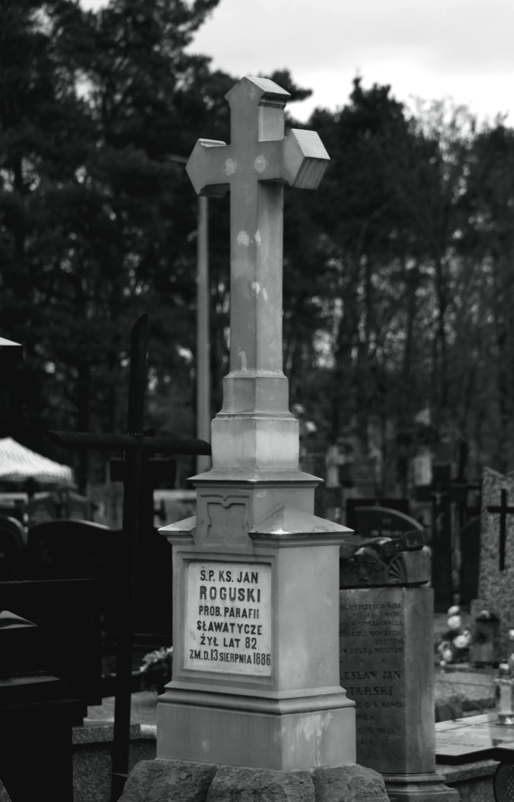 Śp. ks. Jan Roguski urodził się w 1808 roku. Uczył się w szkołach w Węgrowie, następnie w Liceum Warszawskim, a potem wstąpił do seminarium księży misjonarzy. W 1828 roku przyjął święcenia kapłańskie. Posługę rozpoczął jako nauczyciel i kapelan w różnych miejscowościach regionu – m.in. w Hadynowie i Węgrowie.Znany był z ogromnej pracowitości i stanowczości, ale również z troski o ludzi ubogich i potrzebujących. Prowadził szkołę, dbał o parafię i aktywnie organizował życie religijne wśród mieszkańców.