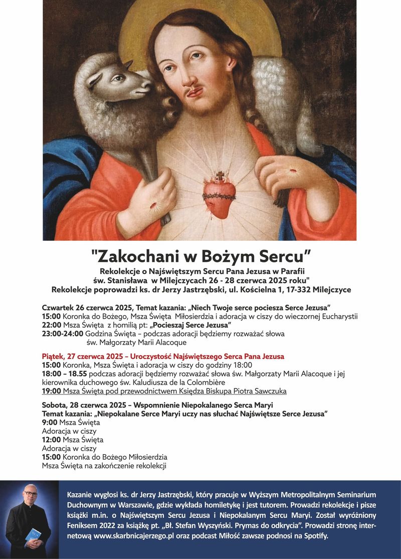 Parafia w Milejczycach zaprasza na Triduum z Najświętszym Sercem Jezusa. Trzydniowe rekolekcje pod hasłem „Zakochani w Bożym Sercu” poprowadzi ks. dr Jerzy Jastrzębski.