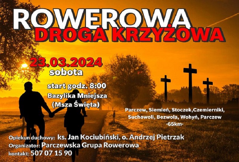 W sobotę, 23 marca Parczewska Grupa Rowerowa organizuje Rowerową Drogę Krzyżową, która rozpocznie się Mszą świętą o godz. 8.00 w Bazylice Mniejszej. Przewodnikami duchowymi będą ks. Jan Kociubiński i o. Andrzej Pietrzak.