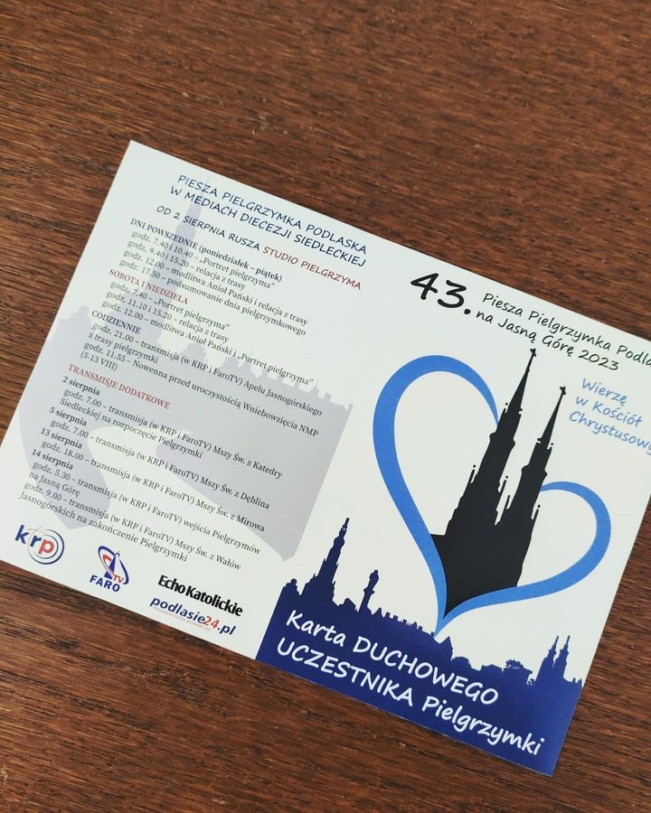 Dla wszystkich osób, które z różnych przyczyn nie mogą wyruszyć na Jasną Górę, stworzono w parafiach, jak co roku, możliwość duchowego pielgrzymowania, by razem przeżyć te niezwykłe rekolekcje w drodze. Wystarczy wypełnić blankiety, na których wskazać należy swoją intencję. Istnieje również możliwość złożenia intencji za pośrednictwem strony internetowej: https://pielgrzymka-podlaska.pl/przeslij-intencje