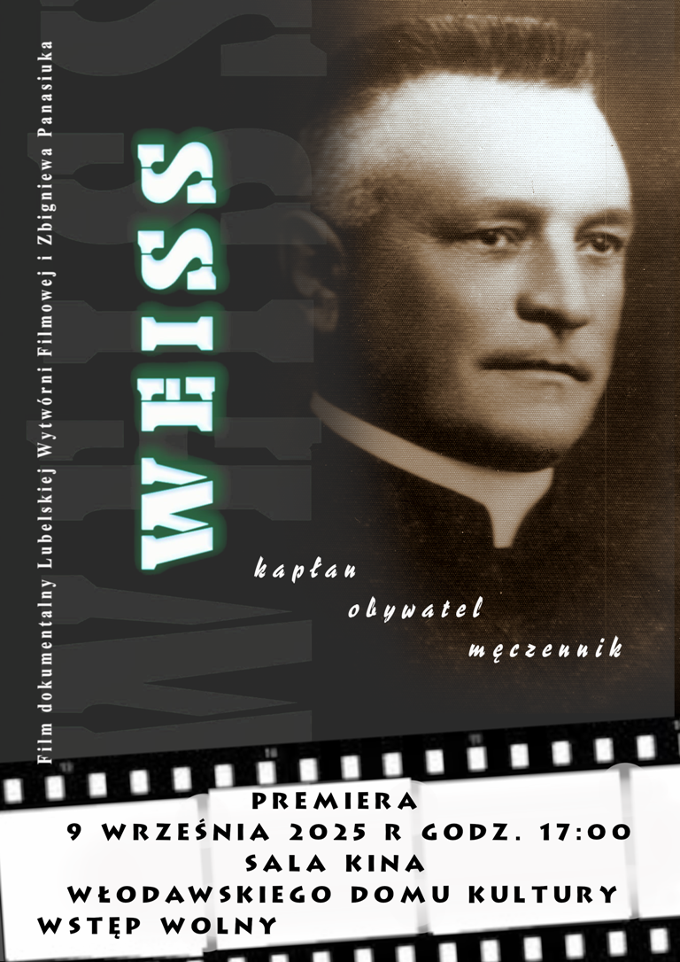 Premiera filmu dokumentalnego „Weiss – kapłan, obywatel, męczennik” odbędzie się we wtorek, 9 września, o godz. 17:00 w sali kina Włodawskiego Domu Kultury. Produkcja poświęcona jest ks. Marcelemu Weissowi, proboszczowi parafii w Lubieniu. Film powstał z inicjatywy Lubelskiej Wytwórni Filmowej oraz Zbigniewa Panasiuka z Lubienia.