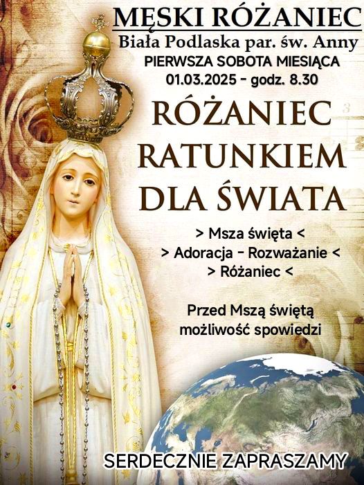 Publiczny Różaniec organizują w Garwolinie Wojownicy Maryi. 1 marca, do tej szczególnej modlitwy wynagradzającej, w duchu nabożeństw pierwszych sobót miesiąca, zaproszone są całe rodziny.