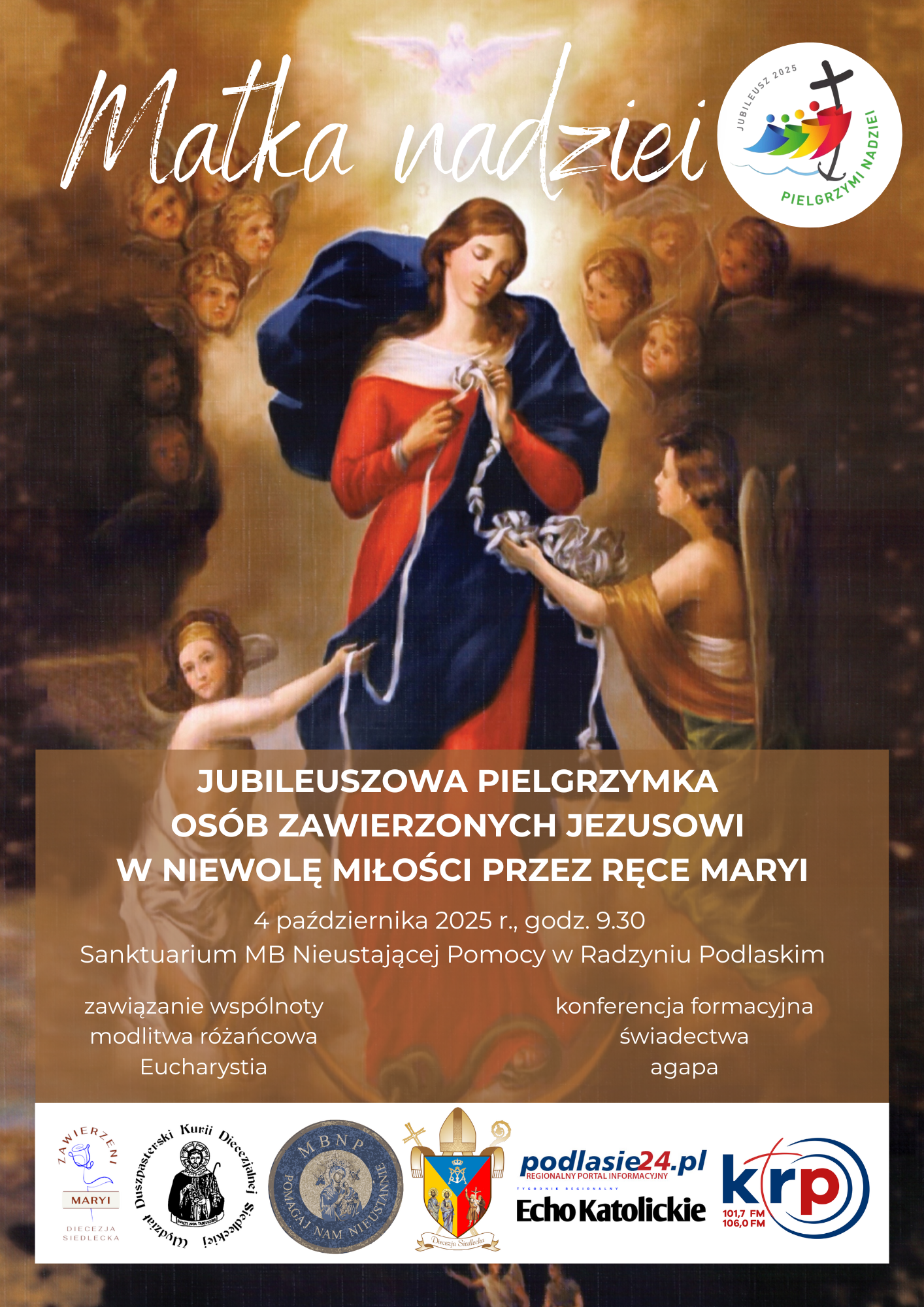 Pielgrzymka Osób Zawierzonych Jezusowi przez Maryję odbędzie się 4 października w Radzyniu Podlaskim. Uczestnicy spotkają się w Sanktuarium Matki Boskiej Nieustającej Pomocy, gdzie przed laty rozpoczęto pierwsze wspólnotowe rekolekcje 33-dniowego Zawierzenia w diecezji siedleckiej.
