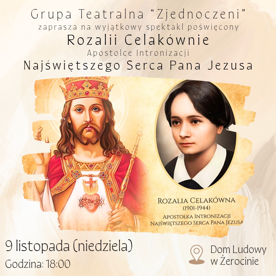 Scenariusz przedstawienia został poświęcony Rozalii Celakównie, pielęgniarce i mistyczce, która całe swoje życie poświęciła służbie Bogu i ludziom. Urodzona w 1901 roku w Jachówce, Rozalia od najmłodszych lat doświadczała wizji i objawień, w których spotykała świętych, dusze czyśćcowe, Matkę Bożą oraz Chrystusa. W 1925 roku rozpoczęła pracę w szpitalu św. Łazarza w Krakowie, zajmując się potrzebującymi, w tym kobietami z marginesu społecznego. W 1933 roku uzyskała dyplom kwalifikowanej pielęgniarki.Mistyczka była również inicjatorką intronizacji Najświętszego Serca Pana Jezusa w Polsce, o czym relacjonowała swojemu spowiednikowi, ks. Dobrzyckiemu. Jej wskazania i doświadczenia duchowe dotyczyły zarówno codziennego życia, jak i wydarzeń historycznych, w tym nadchodzącej II wojny światowej.