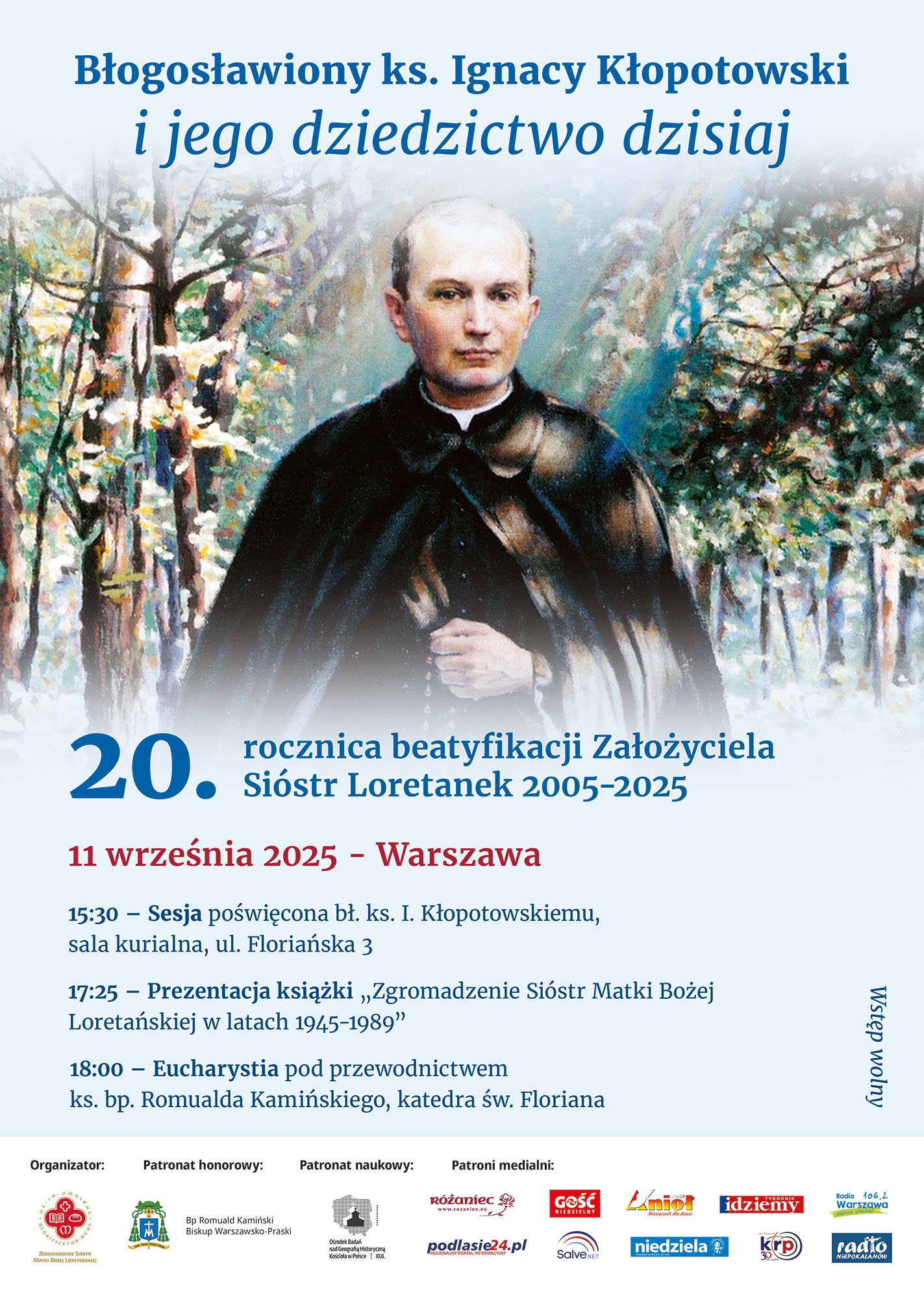 Sympozjum poświęcone osobie błogosławionego ks. Ignacego Kłopotowskiego, założyciela Zgromadzenia Sióstr Loretanek, odbędzie się w sali kurialnej przy katedrze św. Floriana Męczennika i św. Michała Archanioła w Warszawie w czwartek, 11 września.