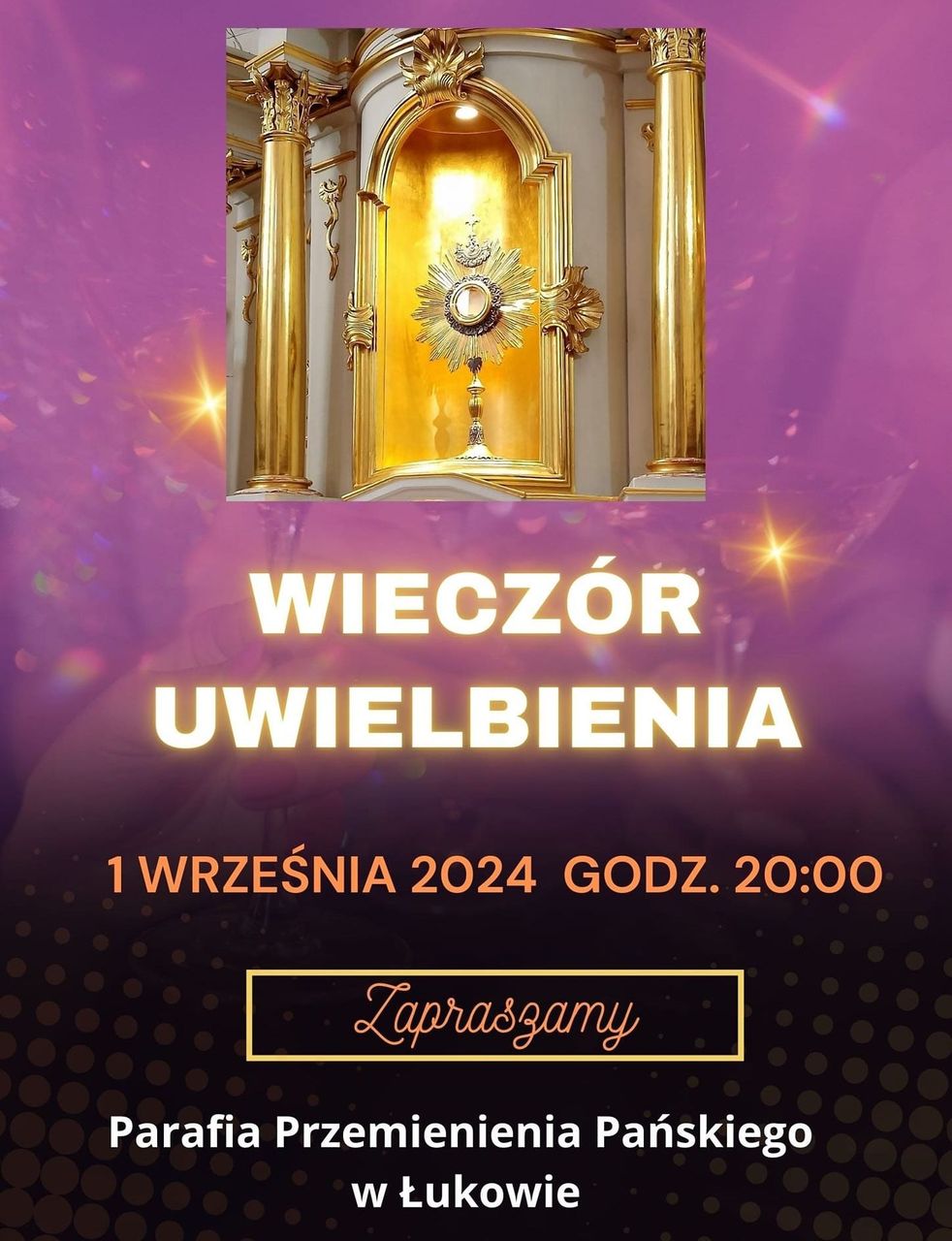 W kościele Przemienienia Pańskiego w Łukowie odbędzie się Wieczór Uwielbienia. Spotkanie to zaplanowano na pierwszą niedzielę września. Poprzedzi je Msza Święta, która rozpocznie się o godzinie 19.00.