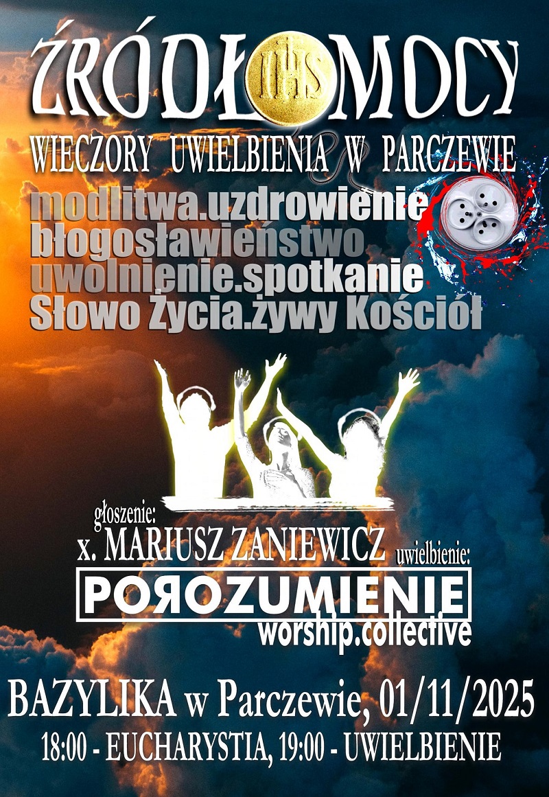 Już od kilku lat w Sanktuarium Matki Bożej Królowej Rodzin w Parczewie odbywają się Wieczory Uwielbienia, pod nazwą Źródło Mocy. Wierni spotykają się, aby śpiewem wielbić Boga i adorować Jezusa Chrystusa w Najświętszym Sakramencie. Najbliższe spotkanie odbędzie się w sobotę, 1 listopada, w Uroczystość Wszystkich Świętych. Słowo Dobrej Nowiny wygłosi proboszcz parafii ks. kan. Mariusz Zaniewicz.