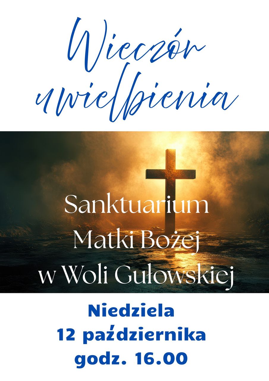 Modlitwa, adoracja Najświętszego Sakramentu oraz śpiew – tak upłynie niedzielny wieczór, 12 października w Sanktuarium Matki Bożej w Woli Gułowskiej. O godzinie 16.00 rozpocznie się w świątyni Wieczór Uwielbienia.