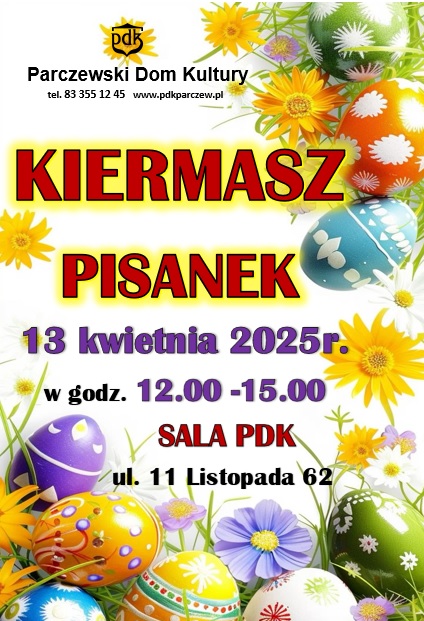 Tegoroczna edycja odbędzie się w niedzielę, 13 kwietnia, w sali widowiskowej Parczewskiego Domu Kultury przy ul. 11 Listopada 62. Towarzyszyć jej będzie kiermasz pisanek.- Zaczynamy już o godzinie 12.00, ponieważ bardzo dużo zespołów się zgłosiło i musimy zapewnić im czas. W tym samym czasie, w holu odbywać się będzie kiermasz pisanek i ozdób wielkanocnych. Wystawiają swoje prace panie z Koła Rękodzieła Artystycznego działającego przy Parczewskim Domu Kultury – informuje Krystyna Kodym dyrektor Parczewskiego Domu Kultury.