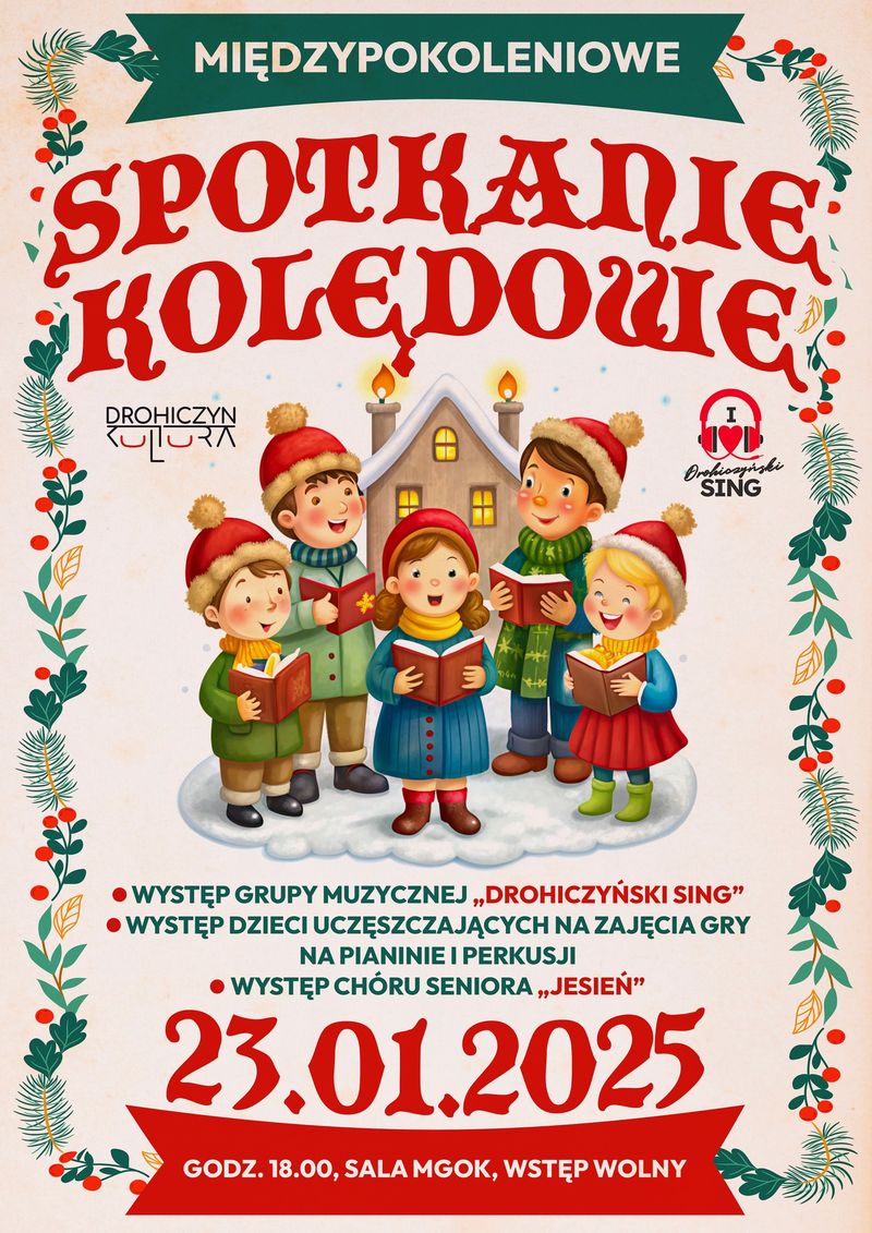 Spotkanie kolędowe odbędzie się w czwartek, 23 stycznia o godz. 18:00 w Miejsko-Gminnym Ośrodku Kultury w Drohiczynie. Wstęp wolny.