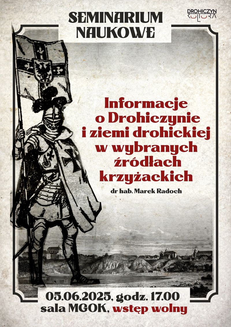 W czwartkowe popołudnie, 5 czerwca miłośnicy historii, regionaliści i wszyscy zainteresowani mieszkańcy będą mieli okazję do poszerzenia wiedzy o przeszłości regionu. W Miejsko-Gminnym Ośrodku Kultury w Drohiczynie odbędzie się seminarium naukowe „Informacje o Drohiczynie i ziemi drohickiej w wybranych źródłach krzyżackich”. Spotkanie poprowadzi dr hab. Marek Radoch.Podczas seminarium można będzie dowiedzieć się, jak Drohiczyn i okolice były opisywane w dawnych źródłach zakonu krzyżackiego. To fascynująca okazja, by spojrzeć na lokalną historię z niecodziennej perspektywy – oczami kronikarzy zakonu krzyżackiego.