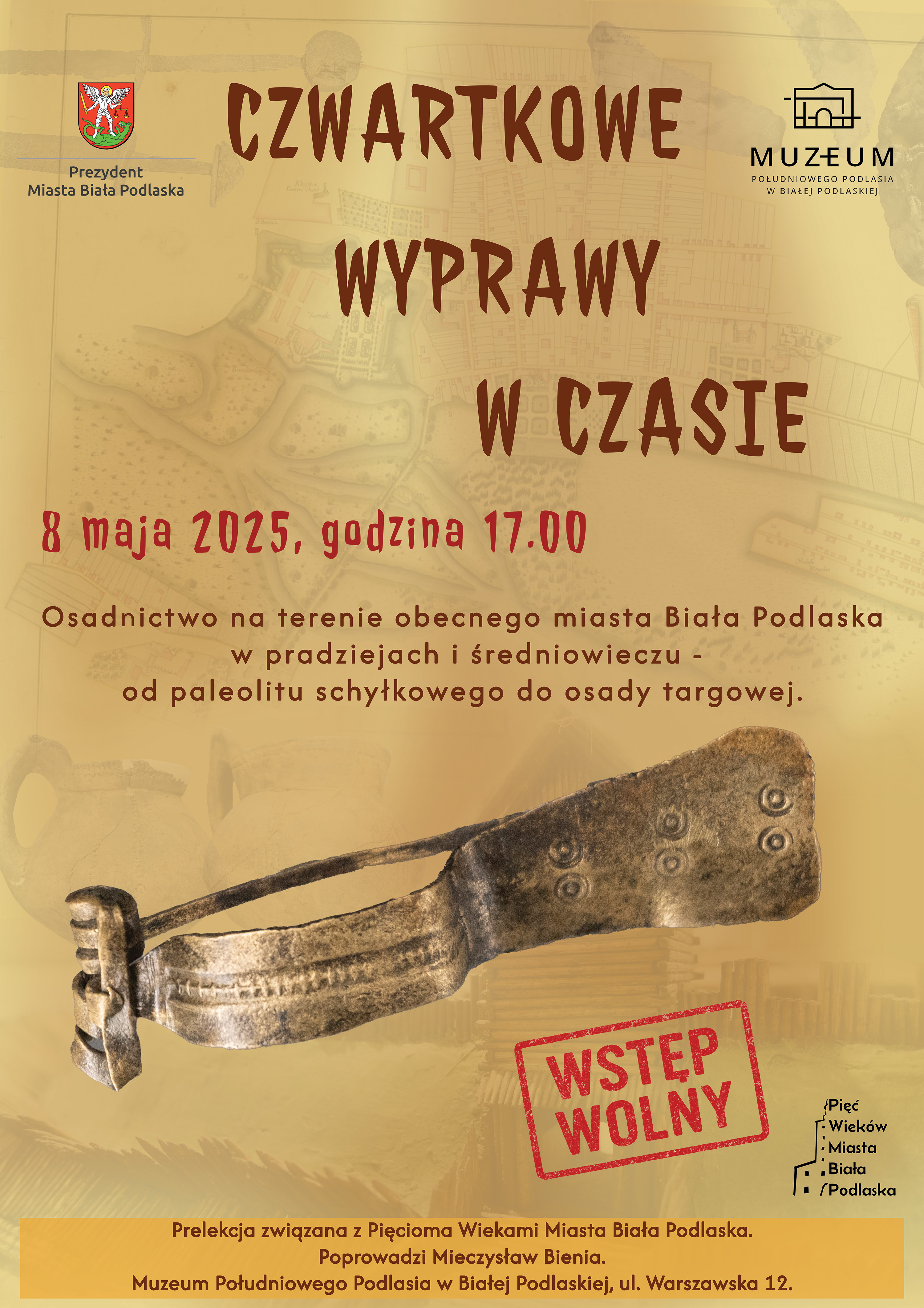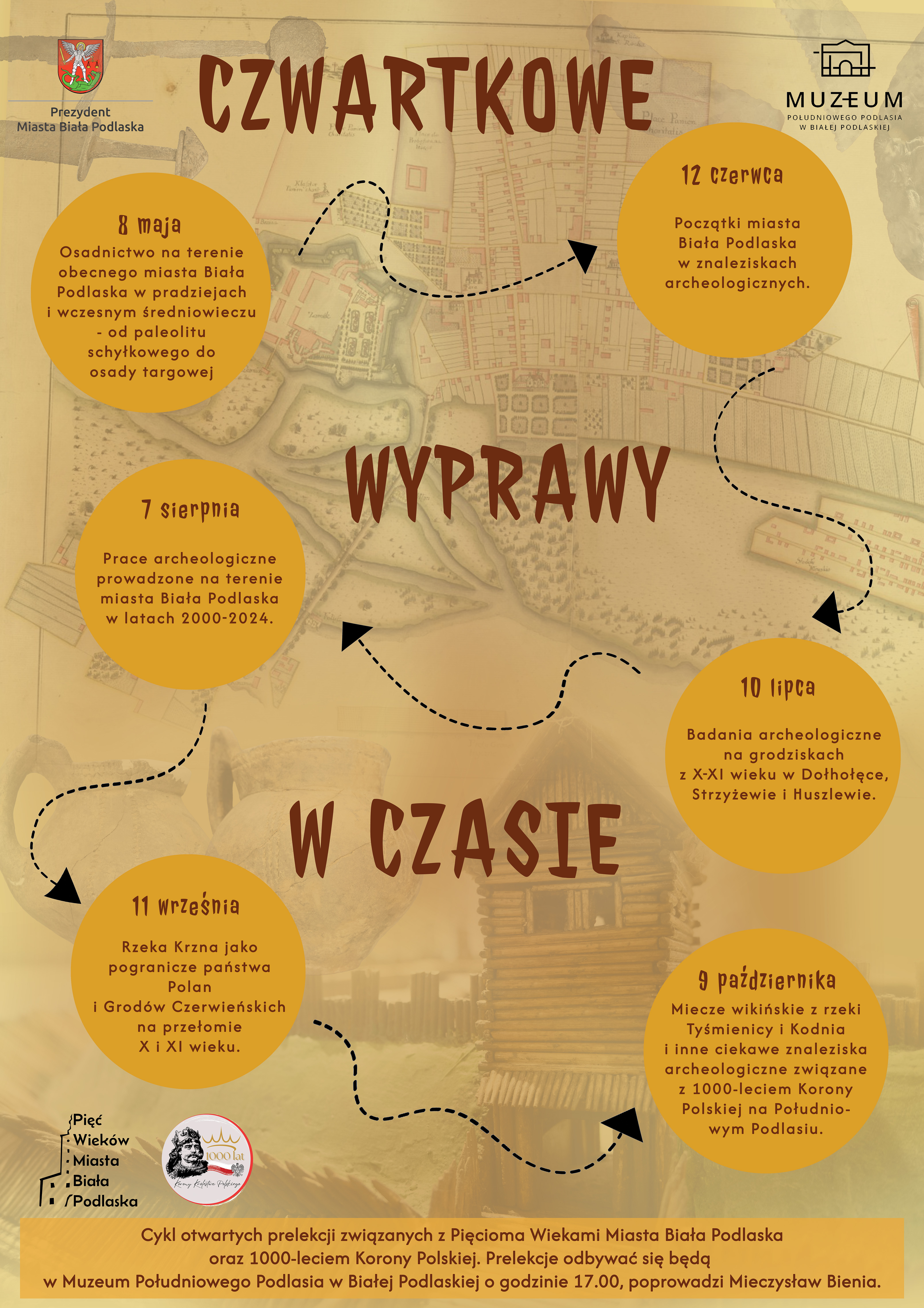 W najbliższy czwartek, 8 maja o godzinie 17.00, w budynku głównym Muzeum Południowego Podlasia rozpocznie się cykl prelekcji „Czwartkowe Wyprawy w Czasie”. Będzie to pierwsza prelekcja z cyklu, zorganizowana jako wydarzenie w ramach obchodów Pięciu Wieków Nadania Praw Miejskich Białej Podlaskiej oraz tegorocznych obchodów 1000-lecia Korony Królestwa Polskiego.