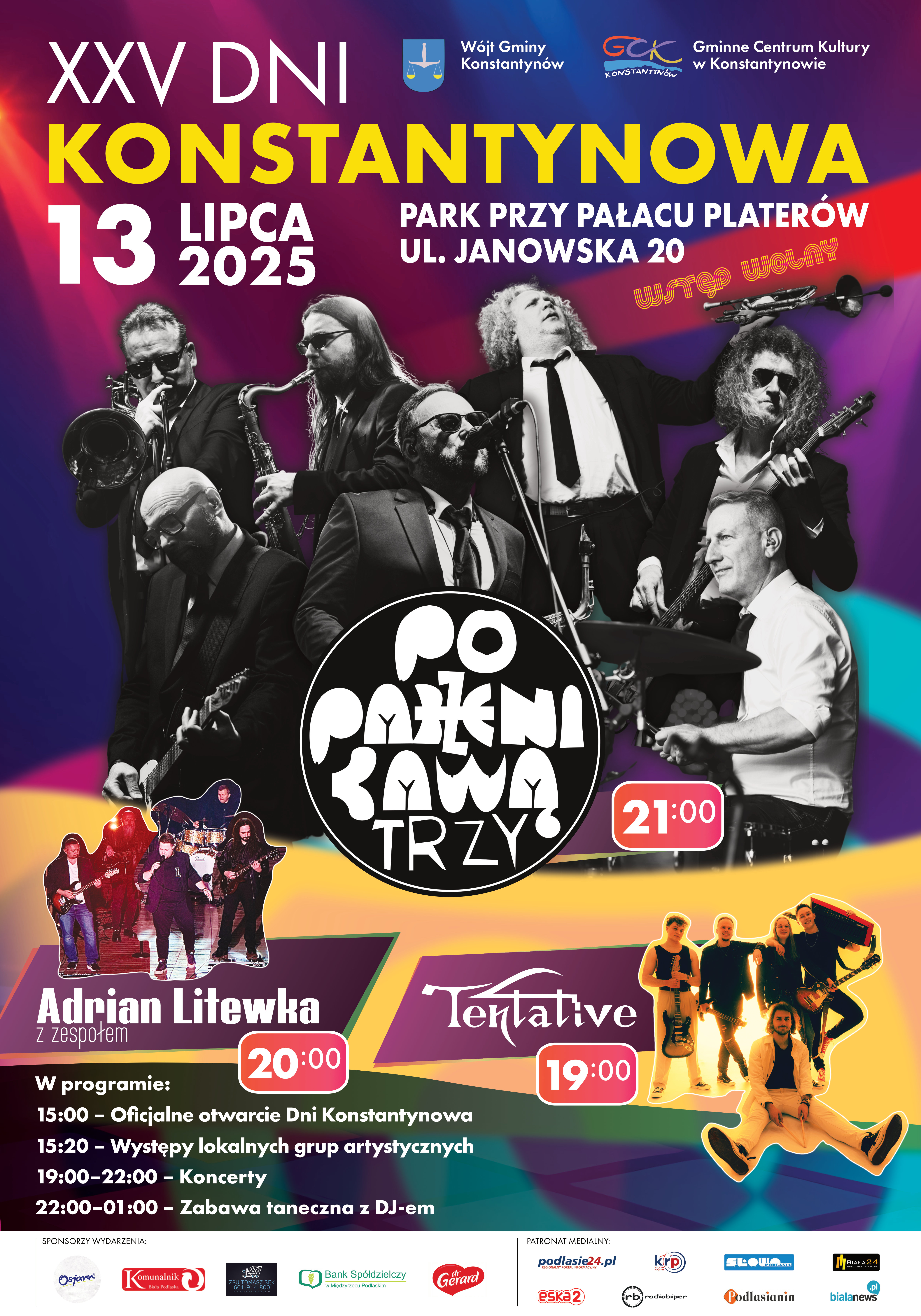 13 lipca o godz. 15:00 w parku Platerów w Konstantynowie odbędzie się impreza plenerowa pn.: „XXV Dni Konstantynowa”.