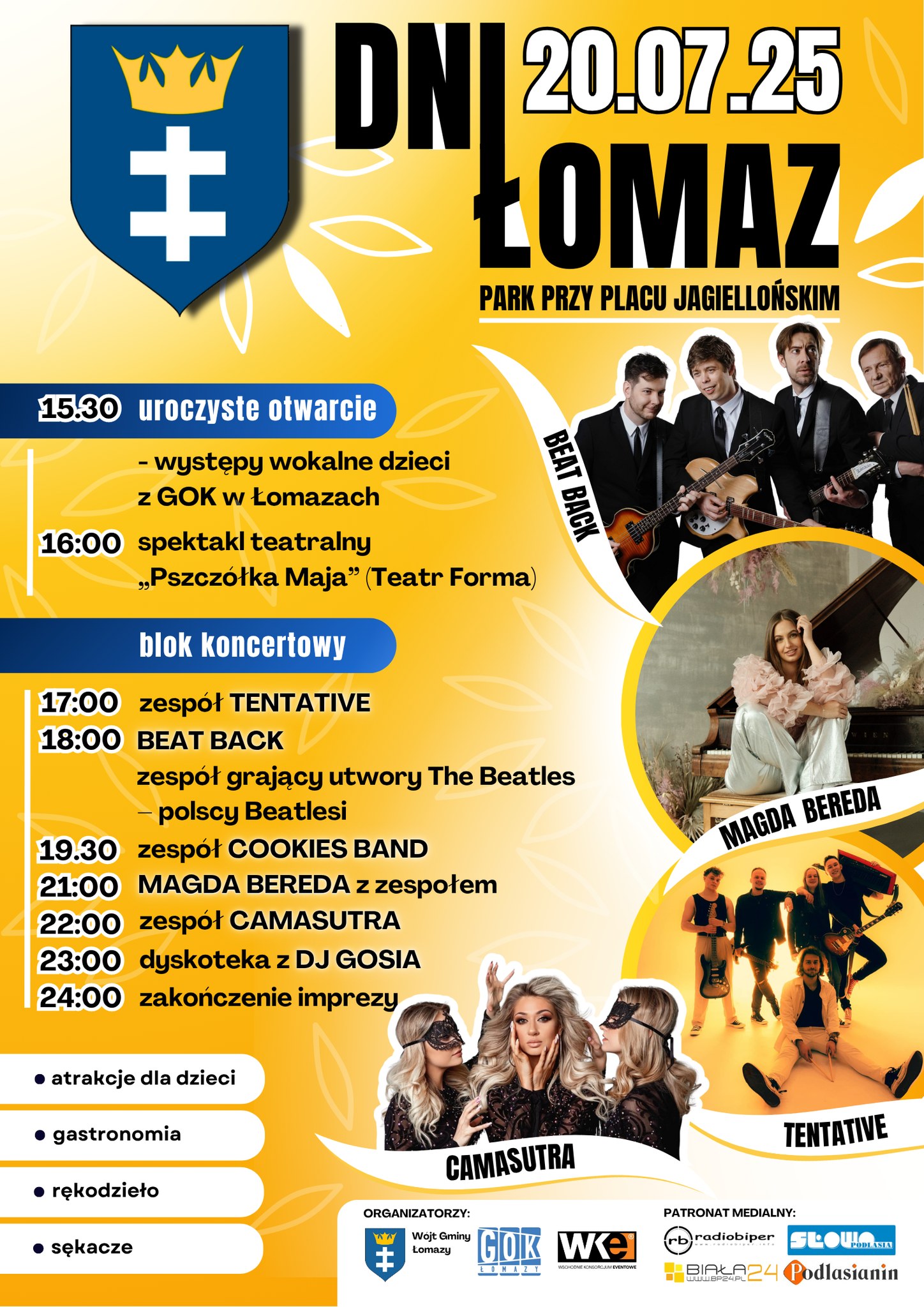 W niedzielę, 20 lipca w Parku przy Placu Jagiellońskim w Łomazach odbędą się Dni Łomaz. W programie: atrakcje dla dzieci, występy wokalne, spektakl teatralny, koncerty i dyskoteka.