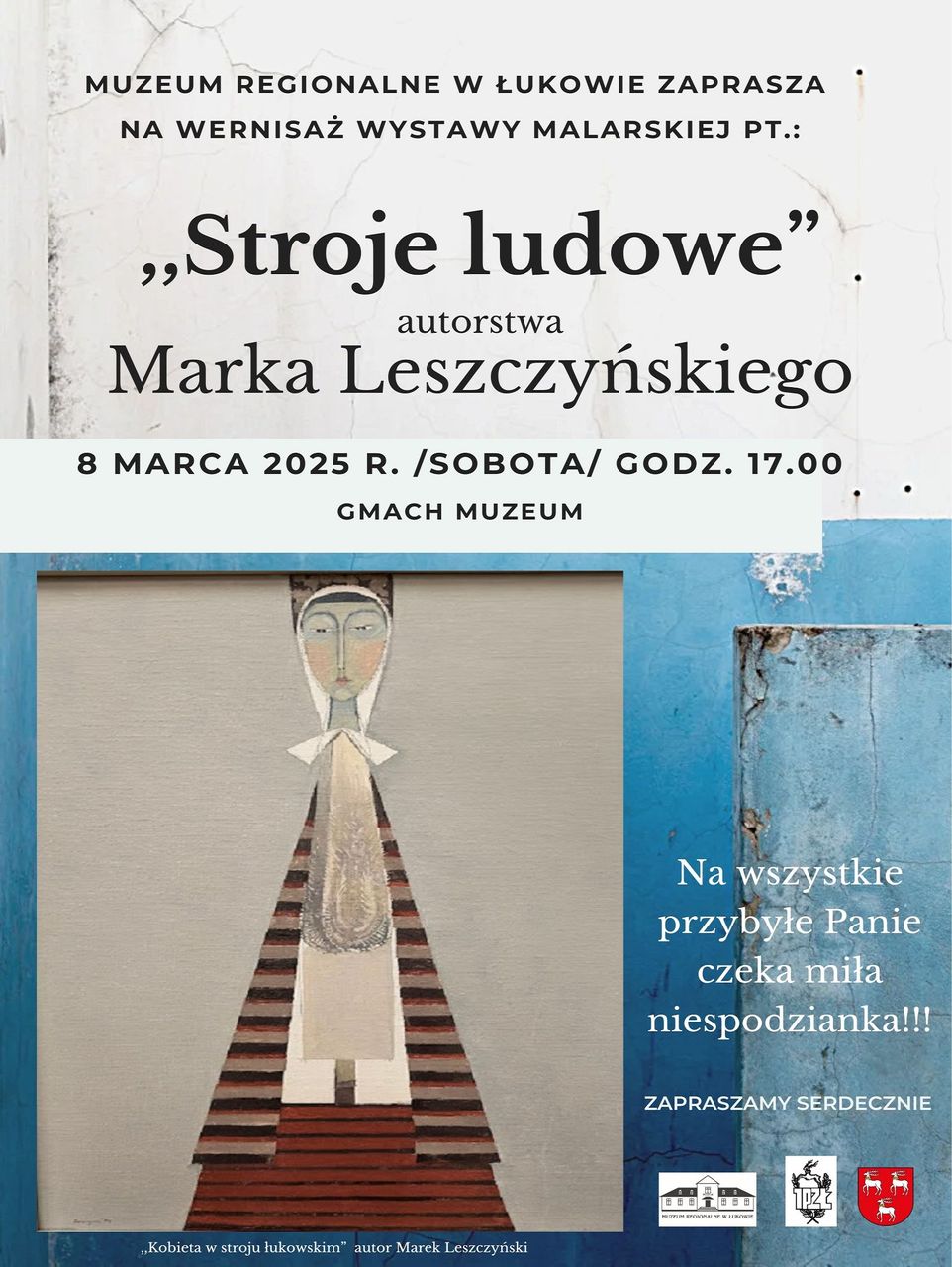 Na każdą z pań, która pojawi się w Muzeum Regionalnym w Łukowie na wystawie malarstwa Marka Leszczyńskiego, czekać będzie niespodzianka. Okazją ku temu będzie oczywiście Dzień Kobiet. To bowiem na 8 marca zaplanowano wernisaż wystawy zatytułowanej „Stroje ludowe”.