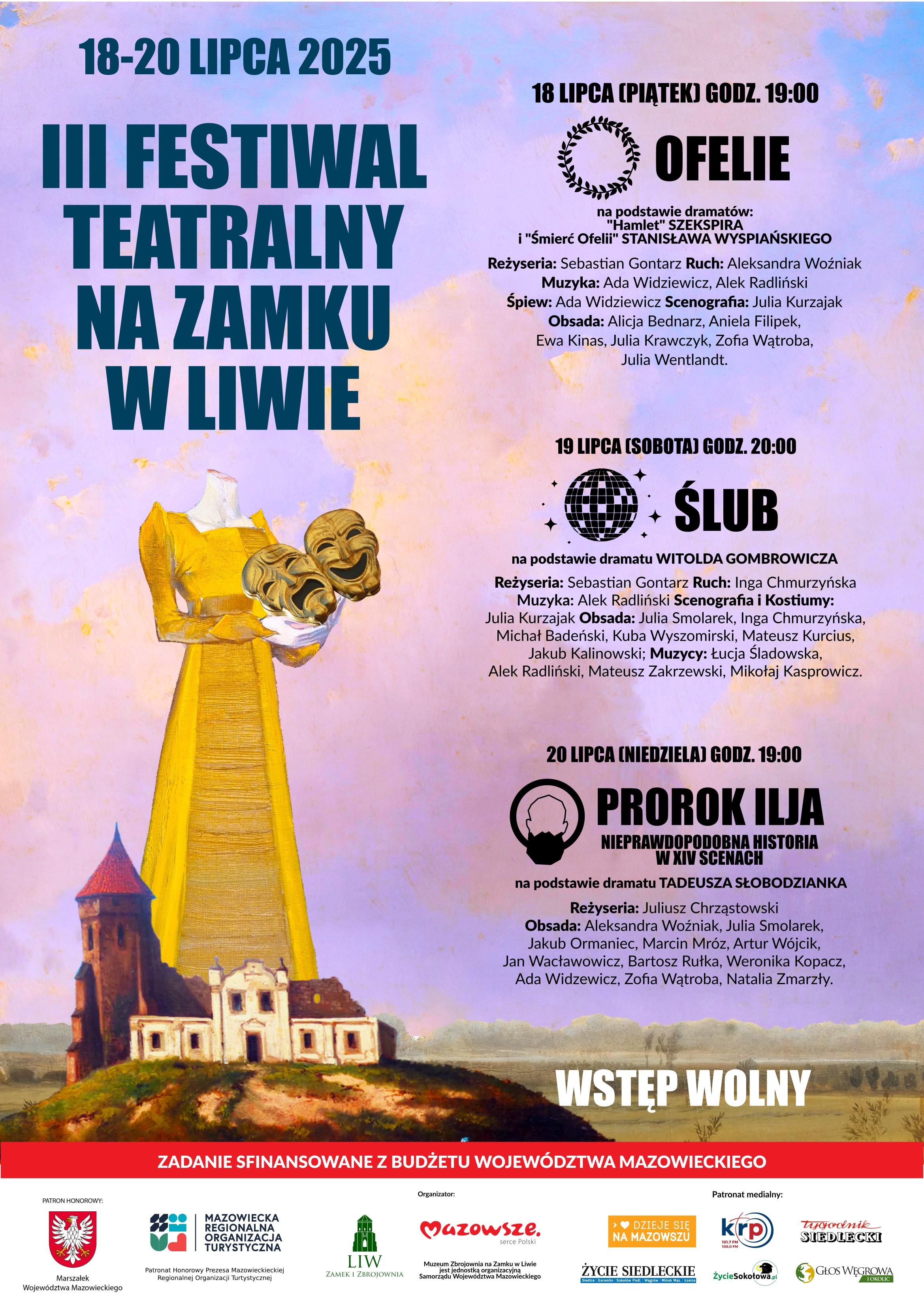 Wstęp na wszystkie spektakle jest wolny. Partnerem wydarzenia jest Samorząd Województwa Mazowieckiego, a Radio Podlasie i portal Podlasie.24 objęły patronatem medialnymi III Festiwalu Teatralnego na Zamku w Liwie.