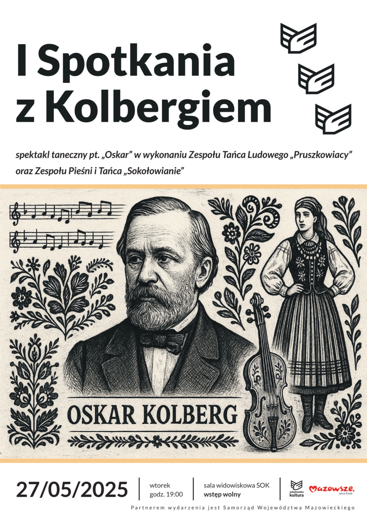 Inicjatywa ta ma na celu promocję dziedzictwa kulturowego związanego z postacią Oskara Kolberga – polskiego etnografa i kompozytora, który pozostawił po sobie bogaty dorobek inspirowany muzyką ludową.W trakcie widowiska łączącego tradycyjną formę koncertu z elementami teatru zaprezentują się Zespół Tańca Ludowego „Pruszkowiacy” oraz Zespół Pieśni i Tańca „Sokołowianie”. Artyści wystąpią w barwnych strojach ludowych, prezentując tańce, pieśni i muzykę, które przybliżają współczesnemu odbiorcy sylwetkę i twórczość Kolberga.