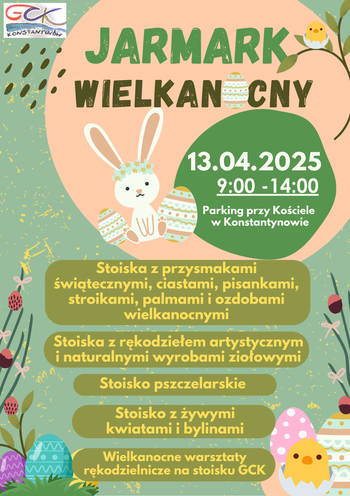 W Konstantynowie odbędzie się Jarmark Wielkanocny, który z pewnością przyciągnie wielu miłośników świątecznych tradycji oraz rękodzieła. W godzinach 9:00-14:00 na parkingu przy kościele w Konstantynowie zostaną rozstawione liczne stoiska, oferujące bogaty wybór świątecznych przysmaków, dekoracji i wyrobów rękodzielniczych.