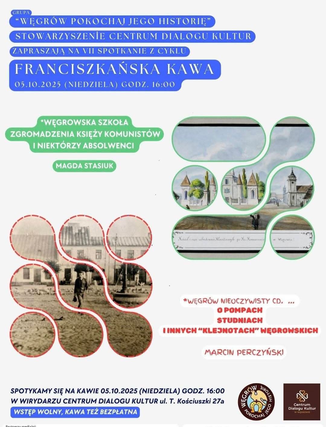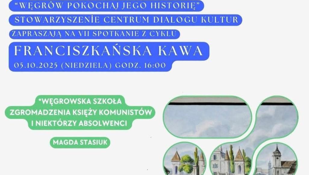 Węgrów pełen tajemnic i opowieści! Już w niedzielę, 5 października o godz. 16:00, Centrum Dialogu Kultur w Węgrowie zaprasza na kolejne spotkanie z cyklu „Kawa Franciszkańska” – tym razem z historią w roli głównej.