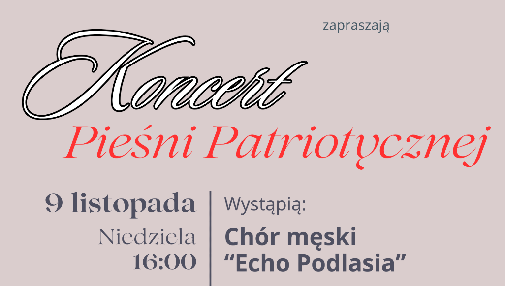 Pieśni patriotyczne w wykonaniu lokalnych artystów zabrzmią w sali widowiskowej Gminnego Centrum Kultury w Konstantynowie. Koncert Pieśni Patriotycznej odbędzie się 9 listopada o godzinie 16:00 i będzie okazją do wspólnego przeżywania muzyki nawiązującej do historii i tradycji narodowej.