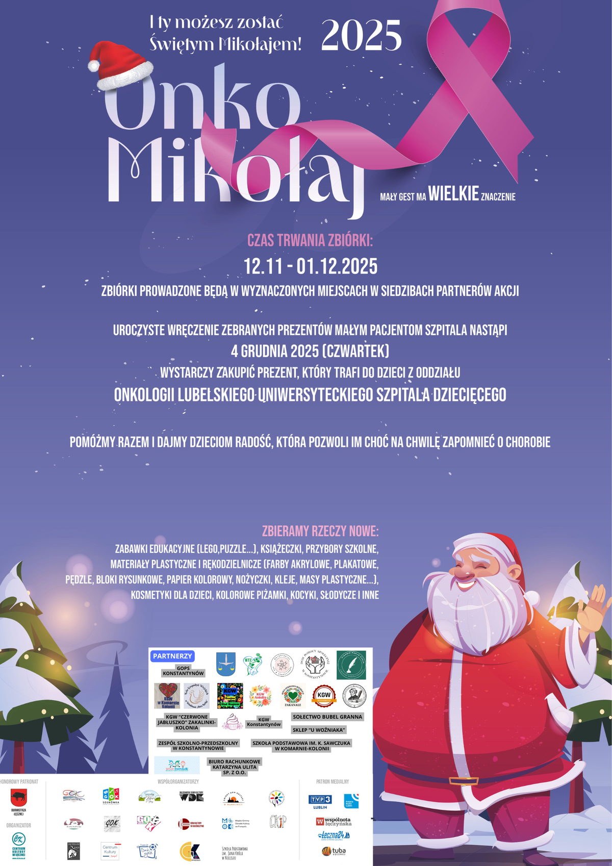 GCK włącza się również w tegoroczną edycję akcji „Onko Mikołaj 2025”, która potrwa od 12 listopada do 1 grudnia. W ramach zbiórki każdy może zostać Świętym Mikołajem i podarować radość dzieciom z oddziału onkologii Lubelskiego Uniwersyteckiego Szpitala Dziecięcego. Zbierane są nowe zabawki edukacyjne, książeczki, przybory szkolne, materiały plastyczne, kosmetyki dla dzieci, kolorowe piżamki, kocyki i słodycze. Zebrane prezenty zostaną przekazane małym pacjentom 4 grudnia 2025 roku podczas uroczystego spotkania w szpitalu.