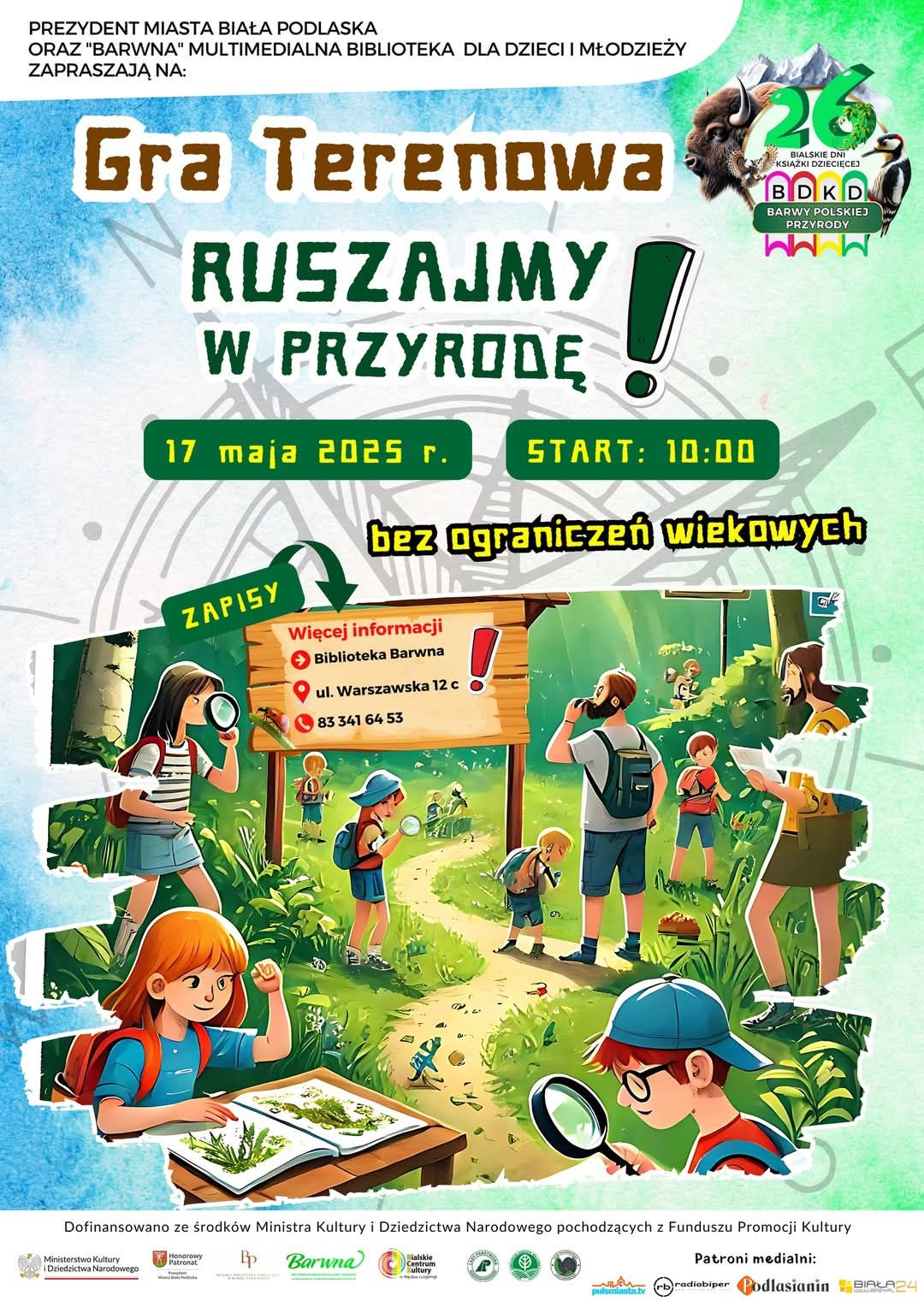 Gra terenowa odbędzie się w parku Radziwiłłowskim, w sercu miasta, gdzie drużyny wyposażone w mapy, kompas i listę zadań, będą mogły zmierzyć się z wyzwaniami. Uczestnicy będą musieli rozwiązywać zagadki, poszukiwać wskazówek, a czasem zaufanie do członków drużyny okaże się kluczowe. Będzie to połączenie literatury, ekologii, aktywności fizycznej i przede wszystkim świetnej zabawy.Zgłoszenia przyjmowane są w Barwnej Multimedialnej Bibliotece dla Dzieci i Młodzieży, mieszczącej się przy ulicy Warszawskiej 12c. Można je składać osobiście lub telefonicznie pod numerem 83 341 64 53. Warto się spieszyć, bo liczba miejsc jest ograniczona.