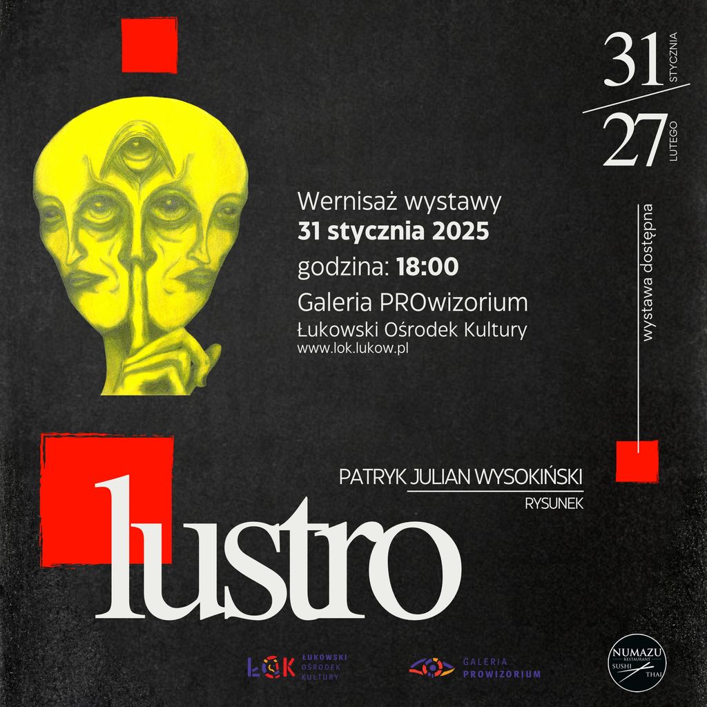 Patryk Julian Wysokiński jest absolwentem Wydziału Prawa i Administracji Uniwersytetu Marii Curie-Skłodowskiej w Lublinie. Jest samoukiem, a rysunkiem zajmuje się właściwie całe życie z krótkimi przerwami. Właśnie po jednej z takich przerw wraca z pierwszą autorską wystawą zatytułowaną „Lustro”. Stanowi ona swoiste odbicie społeczeństwa. Widz po dogłębnej analizie prac może w nich, niczym w lustrze, dostrzec samego siebie oraz towarzyszące mu stany emocjonalne takie jak smutek, rozgoryczenie czy radość.Wernisaż wystawy prac Patryka Juliana Wysokińskiego zaplanowano na najbliższy piątek 31 stycznia. Spotkanie w Galerii PROwizorium ŁOK rozpocznie się o godzinie 18.00.