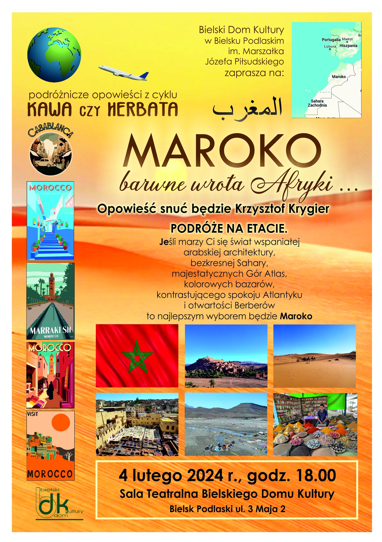 W niedzielę, 4 lutego w Bielskim Domu Kultury odbędzie się spotkanie podróżnicze w ramach cyklu „Kawa czy herbata”. Krzysztof Krygier opowie o Maroku. Wydarzenie rozpocznie się o godzinie 18:00 w Sali Teatralnej BDK.