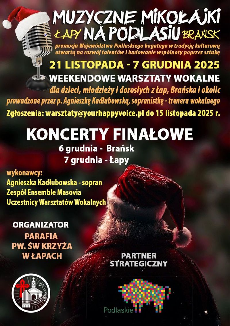 Muzyczne Mikołajki na Podlasiu to inicjatywa promująca Województwo Podlaskie jako region o bogatych tradycjach kulturowych, sprzyjający rozwojowi talentów i budowaniu wspólnoty poprzez sztukę.