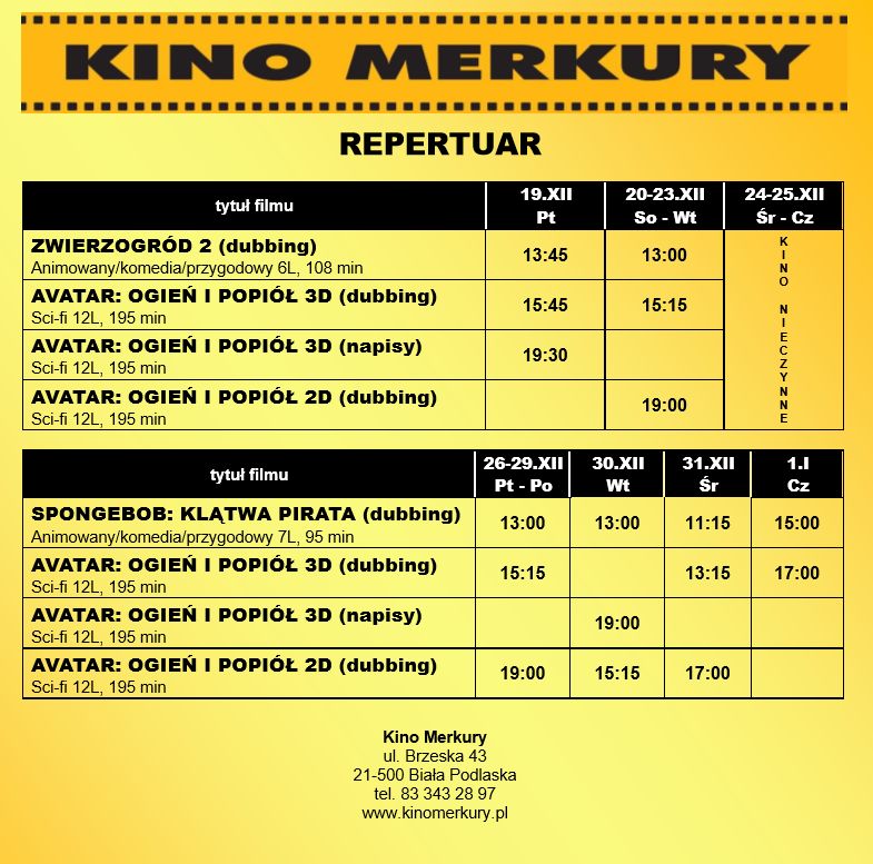 Nowy repertuar Kina Merkury w Białej Podlaskiej już dostępny