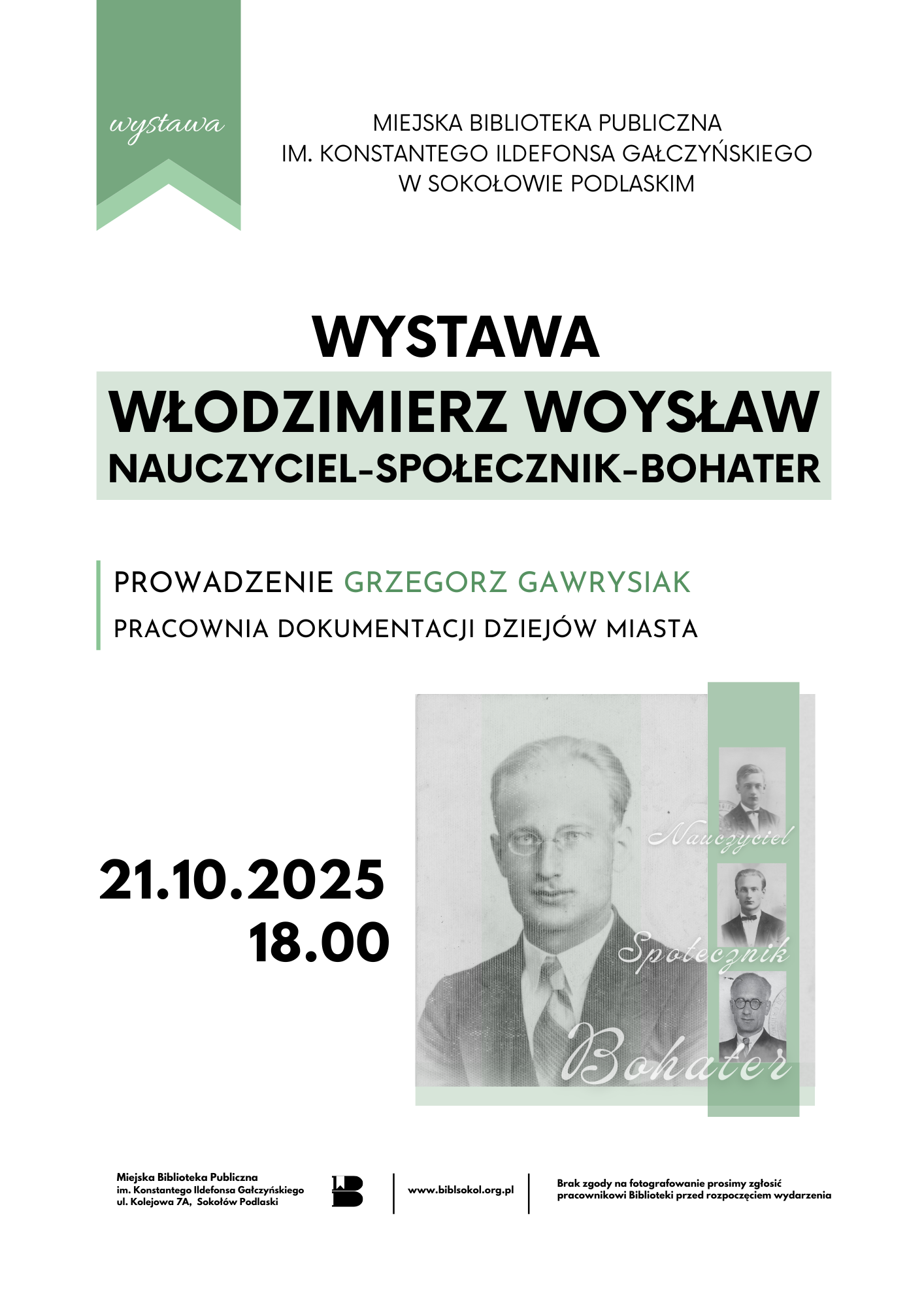 Miejska Biblioteka Publiczna w Sokołowie Podlaskim zaprasza na otwarcie wystawy „Włodzimierz Woysław – nauczyciel, społecznik, bohater”, które odbędzie się we wtorek, 21 października, o godzinie 18:00 w siedzibie biblioteki.